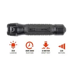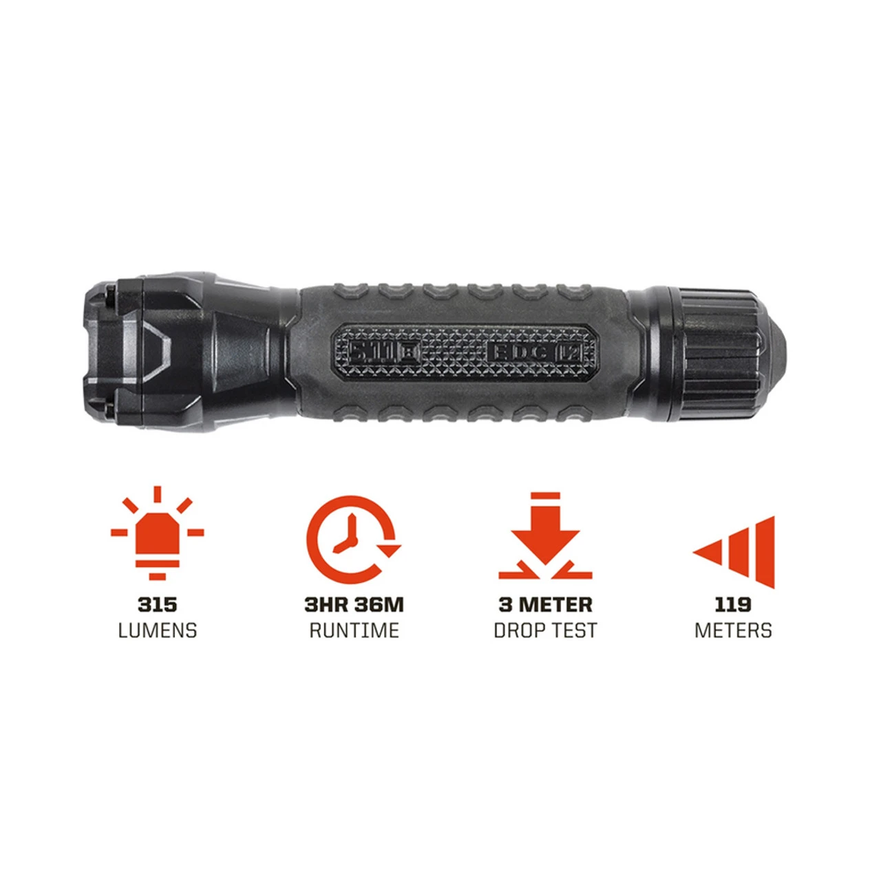 Light weight, and sturdy the 5.11 TACTICAL EDC L2 Flashlight is built for ultimate performance, even in less-than-ideal conditions. Engineered with an impact resistant polymer and featuring ergonomic rubberized handle for a secure grip, the L2 keeps you ready, especially with 315 bright lumens and a generous runtime. This light is on your side.