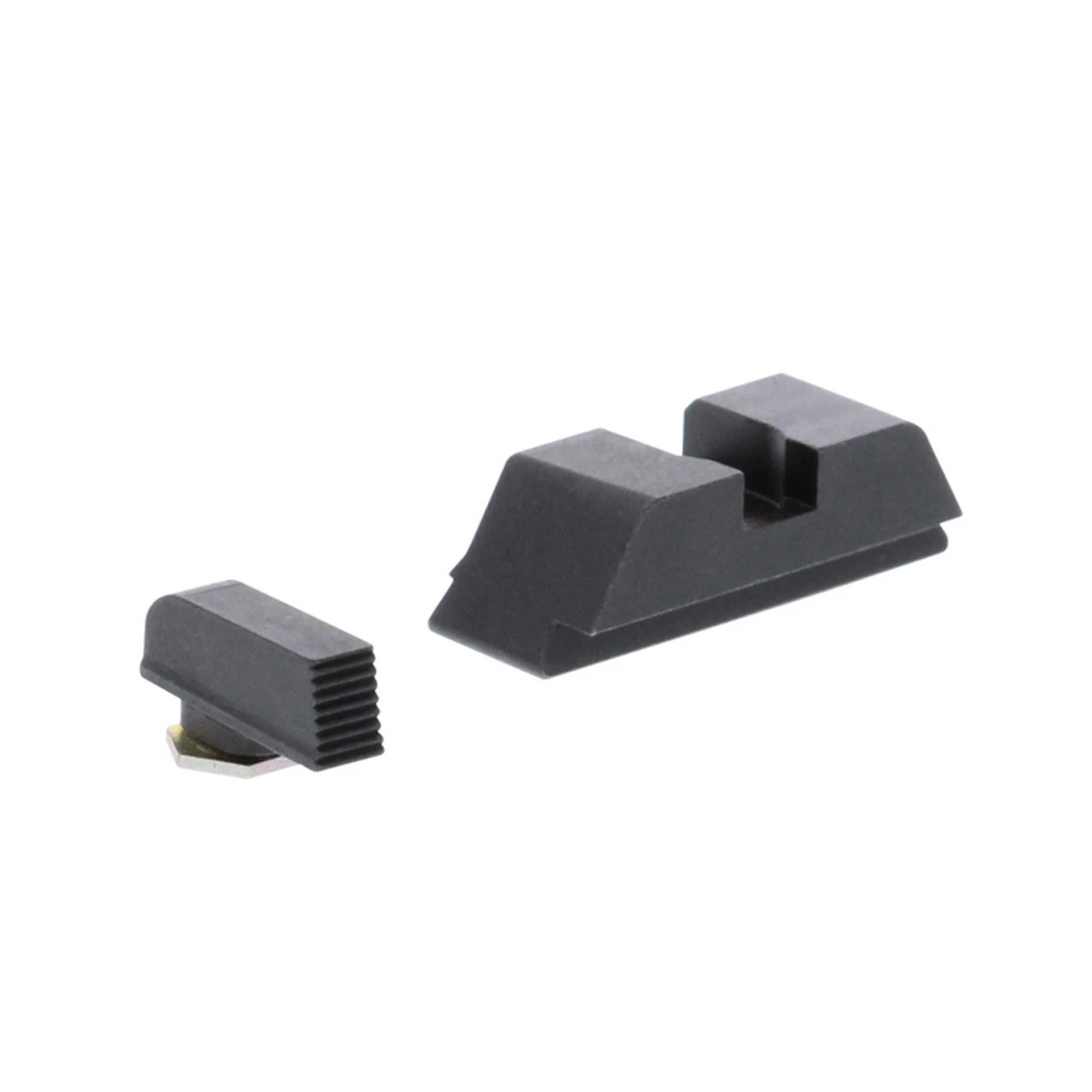 The AMERIGLO Defoor Tactical Sights include serrated front and flat rear sights for Glocks. Proformance sets contain a tritium lamp in lower portion of front post for day/night use. Nitride treated alloy steel has low glare.