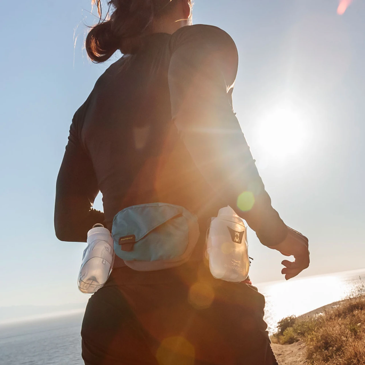 The AMPHIPOD Profile-Lite Breeze Hydration Belt offers light minimalist and effortless access to fluid and essentials on-the-go! Combines the best in no-bounce ultra-light, hydration belt design with roomy storage for keys, ID, smartphones, nutrition and more.