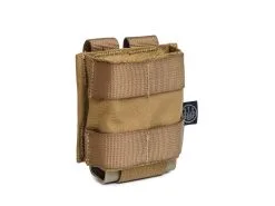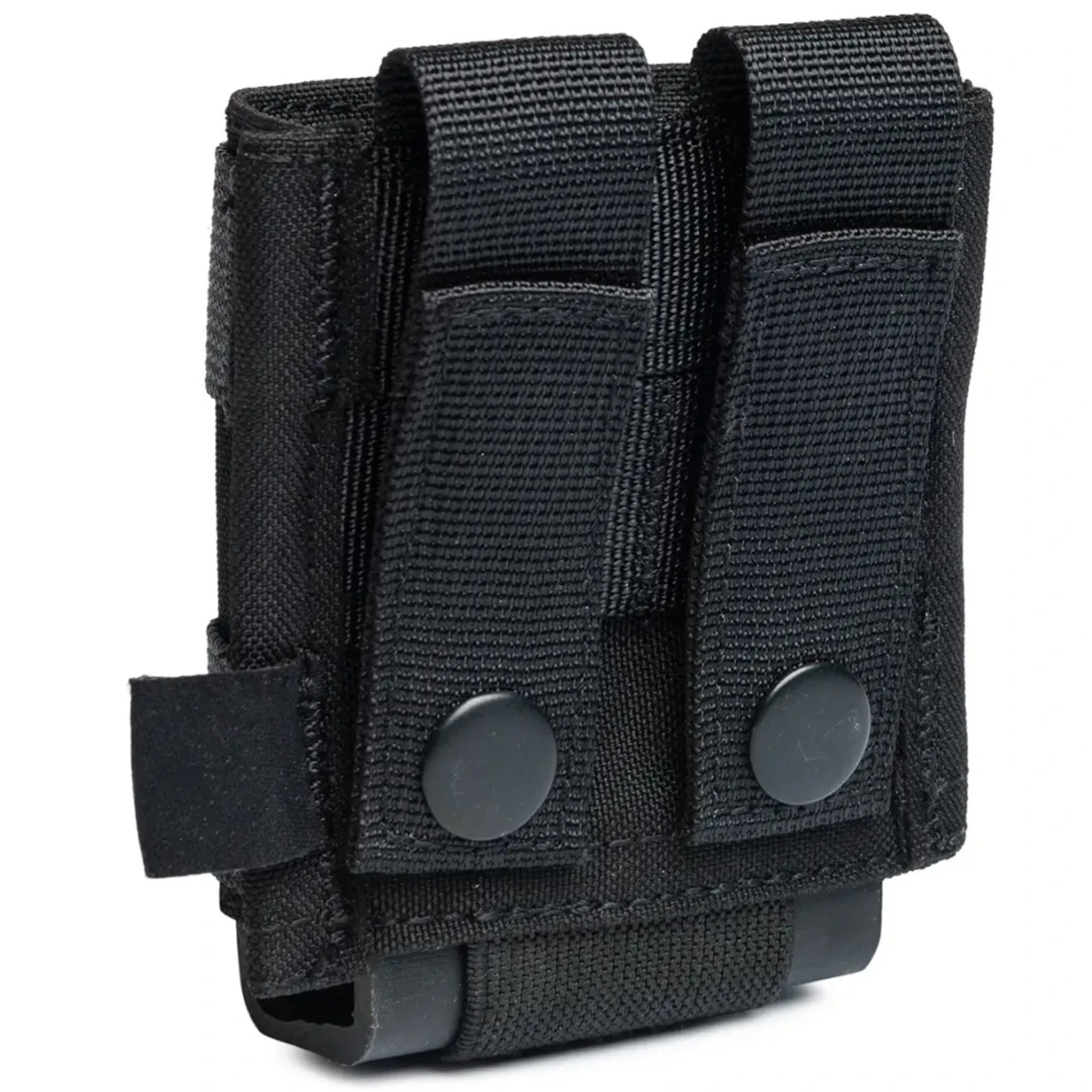 The Grip-Tac MOLLE Single Mag Pouch is made of durable, water-resilient material and is designed for 1 magazine; stitched with 3-ply nylon thread to serve longer. Pouch is rather spacious (3.5″ L x 1.0″ W X 3.5″ H) and holds one magazine; item is very well constructed, holds magazines securely and will last for years; MOLLE system (Modular Lightweight Load-carrying Equipment) that allows for attachment of various compatible pouches and accessories.