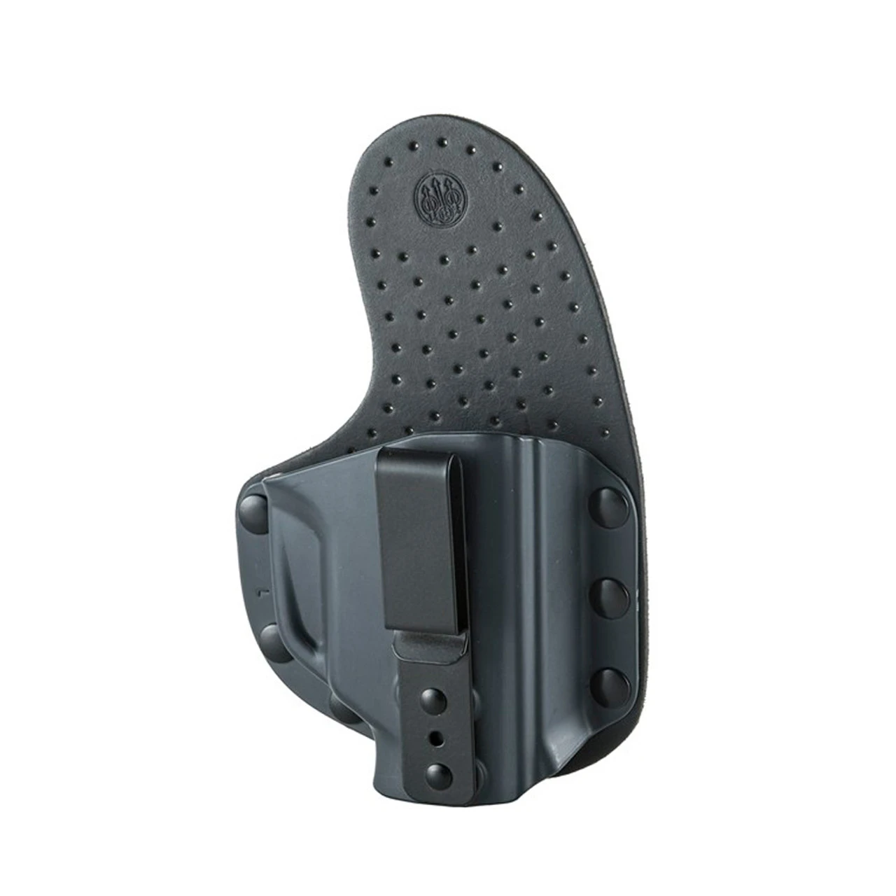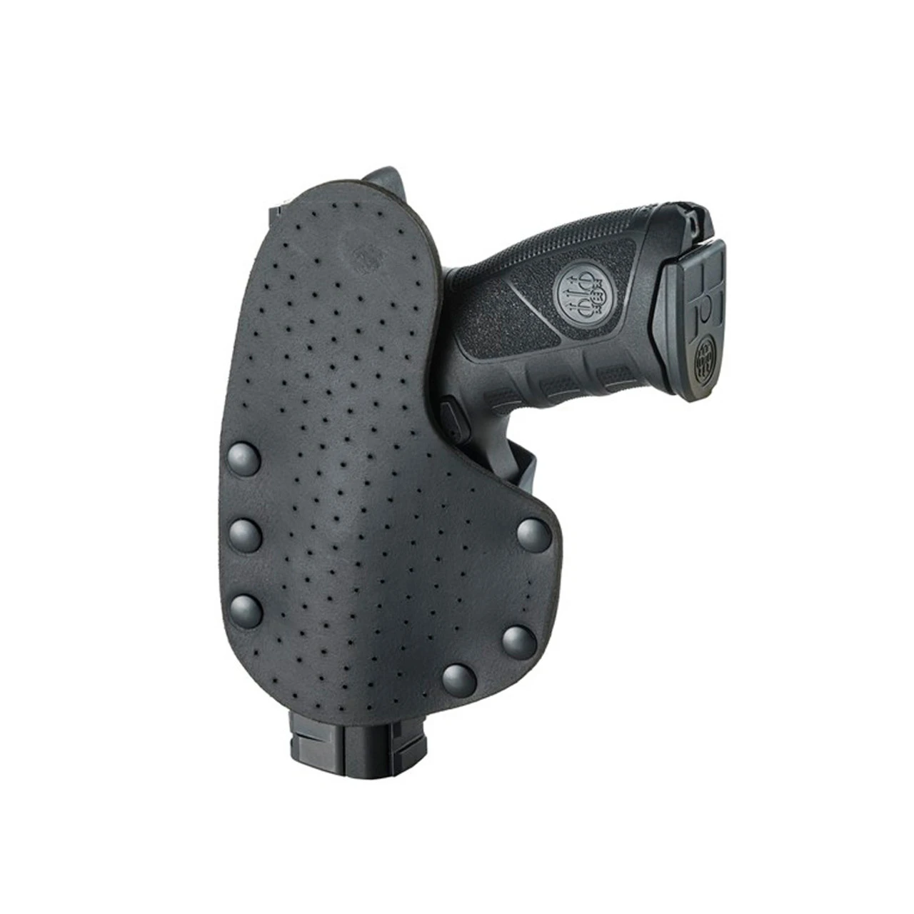 The BERETTA Mod. S IWB Holster features a border of a ride which permits you to wear the gun inside the pants, at the same time reducing the sensation of obstruction and weight. It is constructed of ventilated premium grade leather with 3mm ABS thickness and steel clip that allows for quick and easy positioning on your belt.