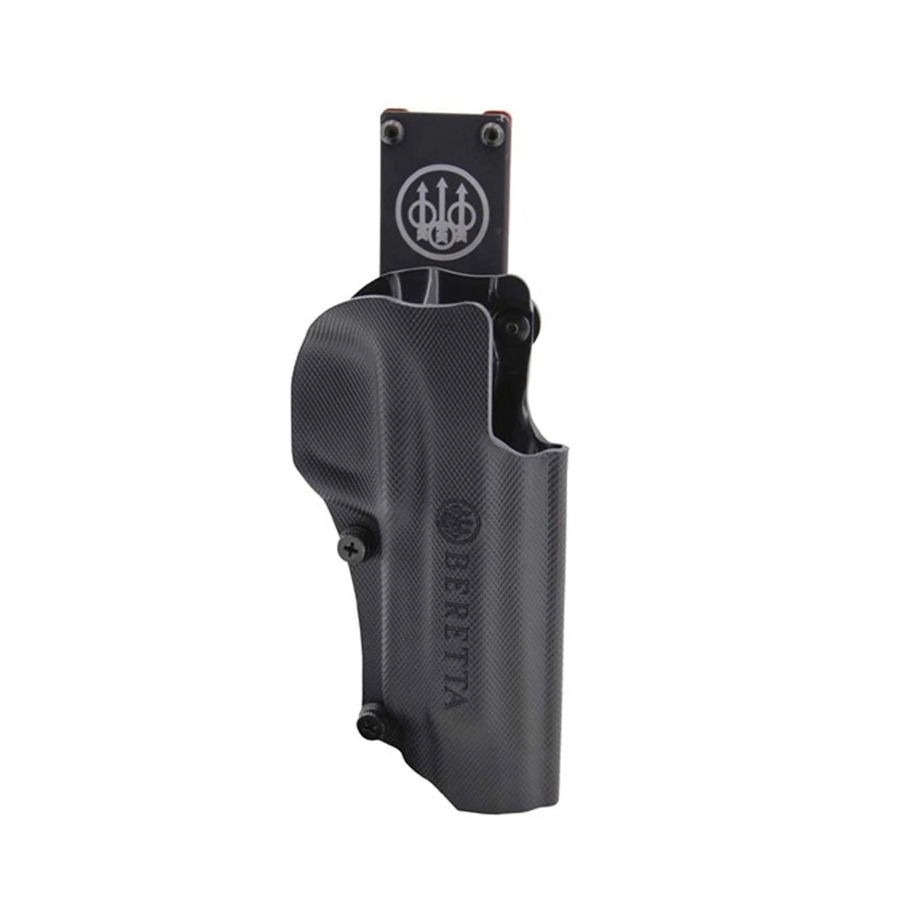 The Thunder holster is suitable for competition or OWB Carry. Thanks to an adjustable aluminum drop hanger, it’s possible to adjust the holster in ev ery angle. Will fit all 92 series handguns.