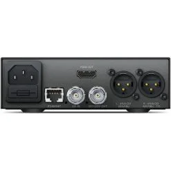 Supporting up to 12G-SDI data rates with intelligent heat dissipation, and offering features such as XLR connections and an Ethernet control and PoE port, the Teranex Mini SDI to HDMI 12G Converter, from Blackmagic Design, is a highly improved solution for rack-mount as well as cable duct and desktop installations. Connect up to a Full 4K DCI 4096x2160p SDI signal and run it out to an HDMI display in the same DCI 4K resolution, and monitor the signal locally via an SDI loopout. You can also de-embed audio from the signal and route it separately via full-size XLR connectors that are switchable between balanced analog and AES/EBU digital audio.