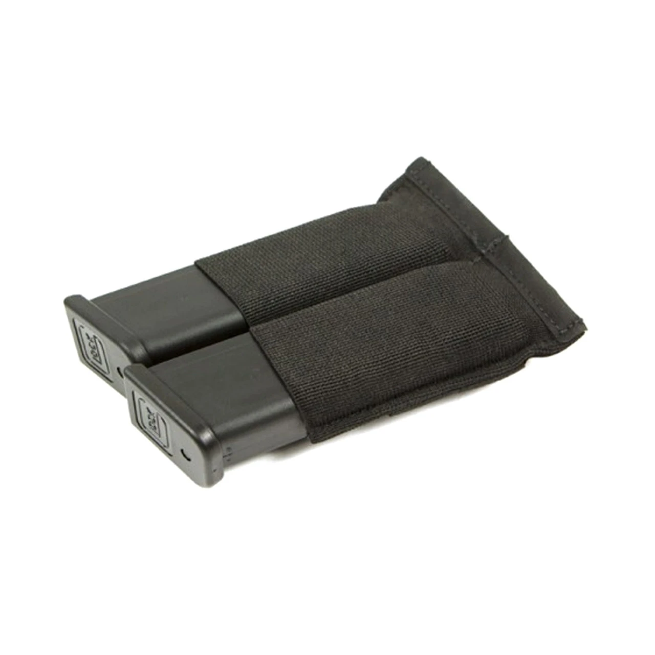 The BLUE FORCE GEAR Ten-Speed Double Mag Pouch, Helium Whisper, Black (HW-TSP-PISTOL-2-BK) is a multi-use magazine pouch that is the perfect blend of speed and security. Made of military grade elastic, the Double Mag Pouch holds almost any single or double stack pistol mags or similar sized items such as 6P sized flashlights, multitools, etc. When empty, the pouch lies flat for less bulk.