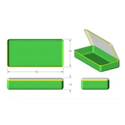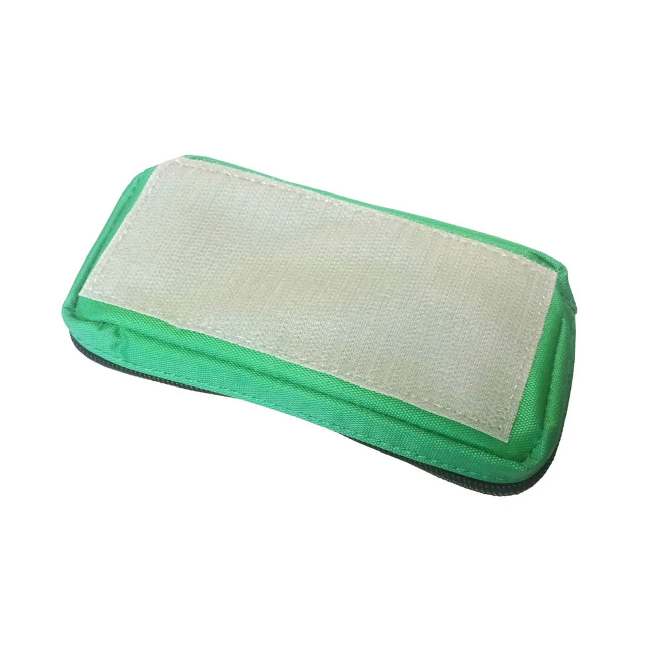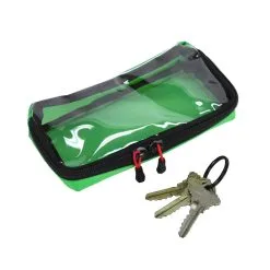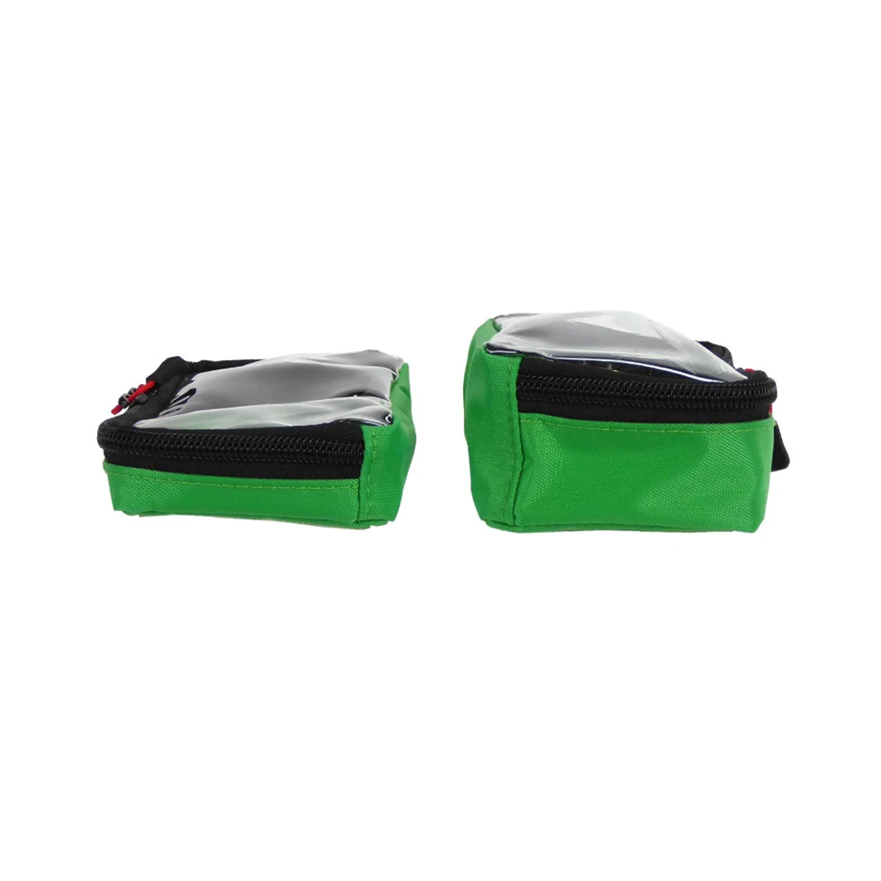- A medium-sized 6″ x 3″ x 1″ green pouch with a transparent lid