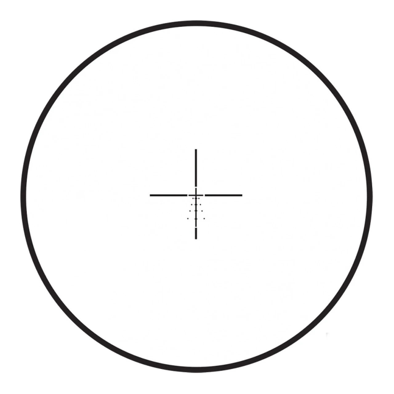 The Ballistic Plex E1 reticle lets the shooter compensate for wind drift. Small dots placed to the left and right of the reticle represents the effect of a 10 mph crosswind for most big game hunting cartridges. For 5 mph, simply hold into the wind half the distance to the dot. If the crosswind is 20 mph, simply hold into the wind twice the distance from the center post to the dot.