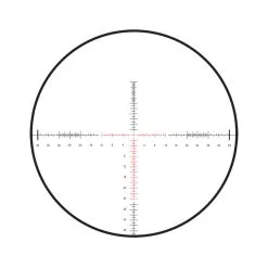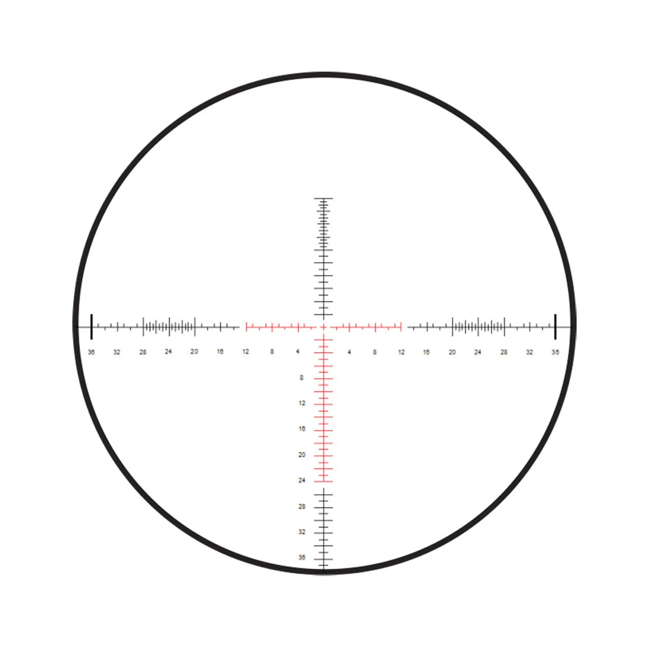 - Vertical crosshair features 1-MOA marks for distance holdover; horizontal crosshair has 1/2-MOA and 1-MOA lines for windage hold-off