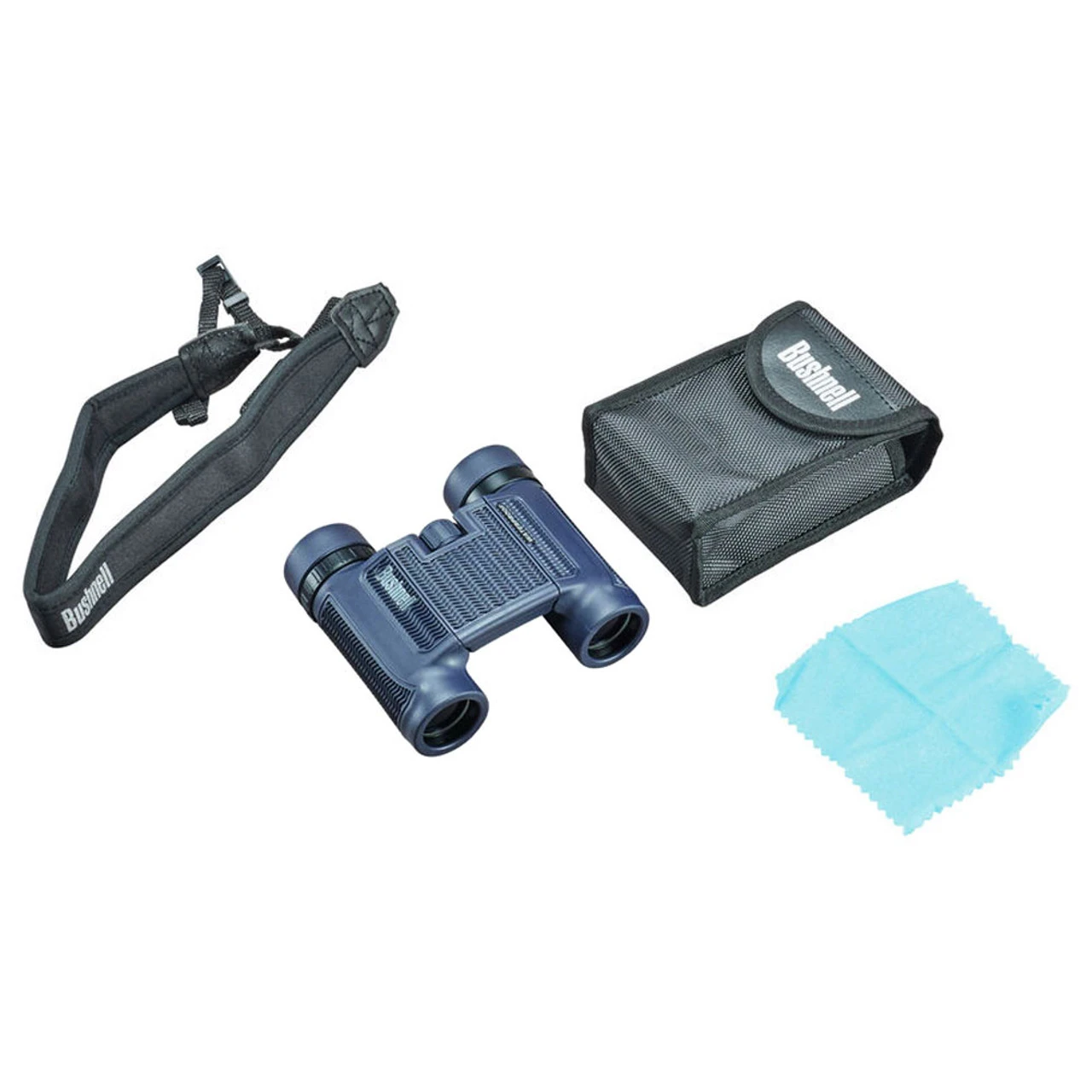 The blue 10×25 H20 Compact Binocular from Bushnell delivers a fogproof housing and rubber armoring textured with soft ridges to maintain grip. This compact binocular has a dual-hinge bridge for minimal footprint, multicoated lenses and high-transmission BAK4 prism glass.