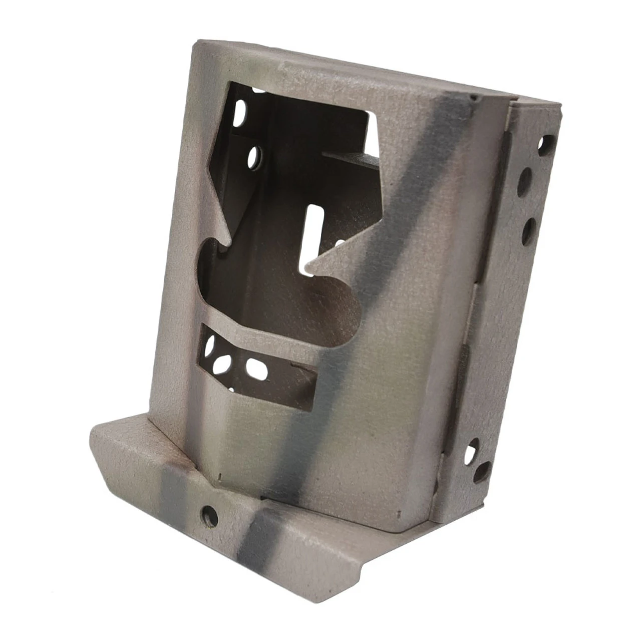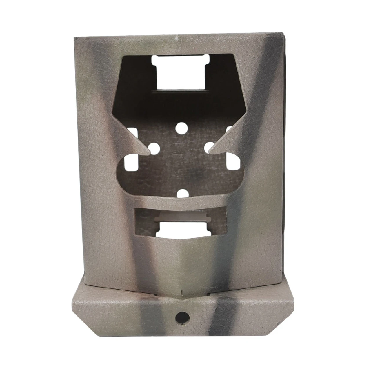 Will fit the following Wildgame Innovations camera models… Vision 8 (v8i7) Vision 8 (v8i20) Vision 8 Lightsout (v8b7) Vision 8 Lightsout (b8b20) Vision 10 Vision 12 IR This is a NEW security box made by CAMLOCKbox to fit Wildgame Innovations game cameras. This great accessory protects your trail camera from theft and damage by animals. These are very high-quality boxes made from heavy 16-gauge steel. A baked-on powder coat finish with a camo break-up paint applied. They can be lagbolted, belted, or bungeed to trees and they have plenty of clearance for large-headed bolts. These boxes are also fully compatible with python cables. The CAMLOCKbox security box for the Wildgame Innovations Vision Trail Camera works great on public land where you cannot deface trees and these boxes are lockable with ordinary padlocks as well for added security.