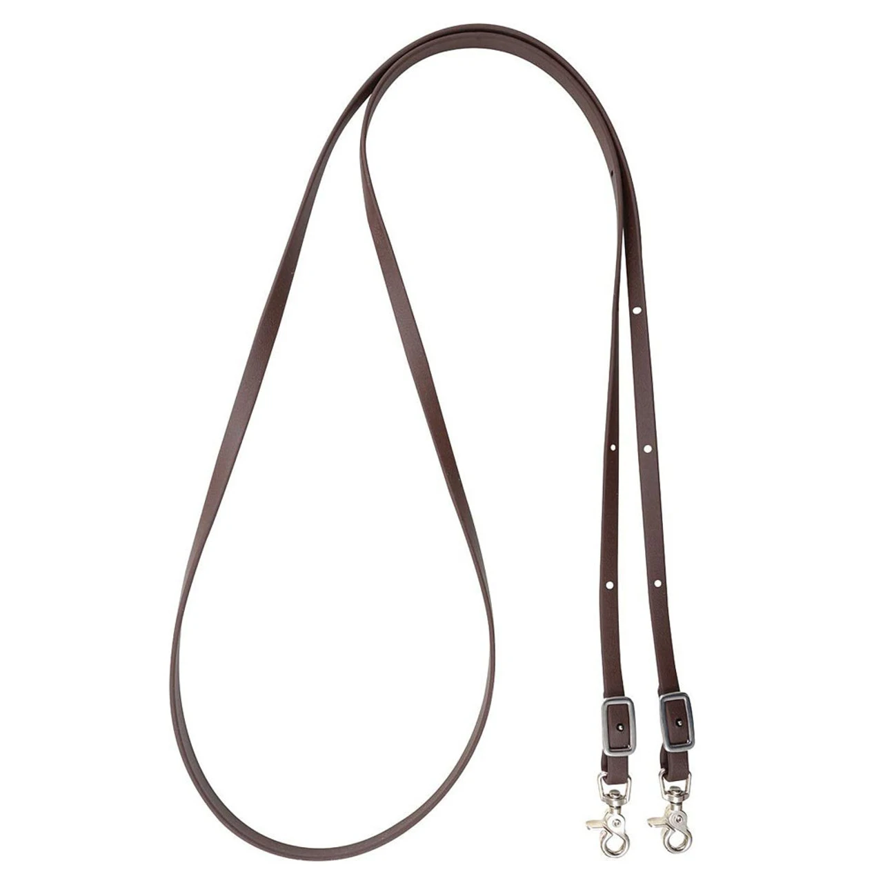 The CASHEL 9ft Biothane Rein has two end snaps and two adjustment buckles with keepers. 9′ long x 1/2″ wide.