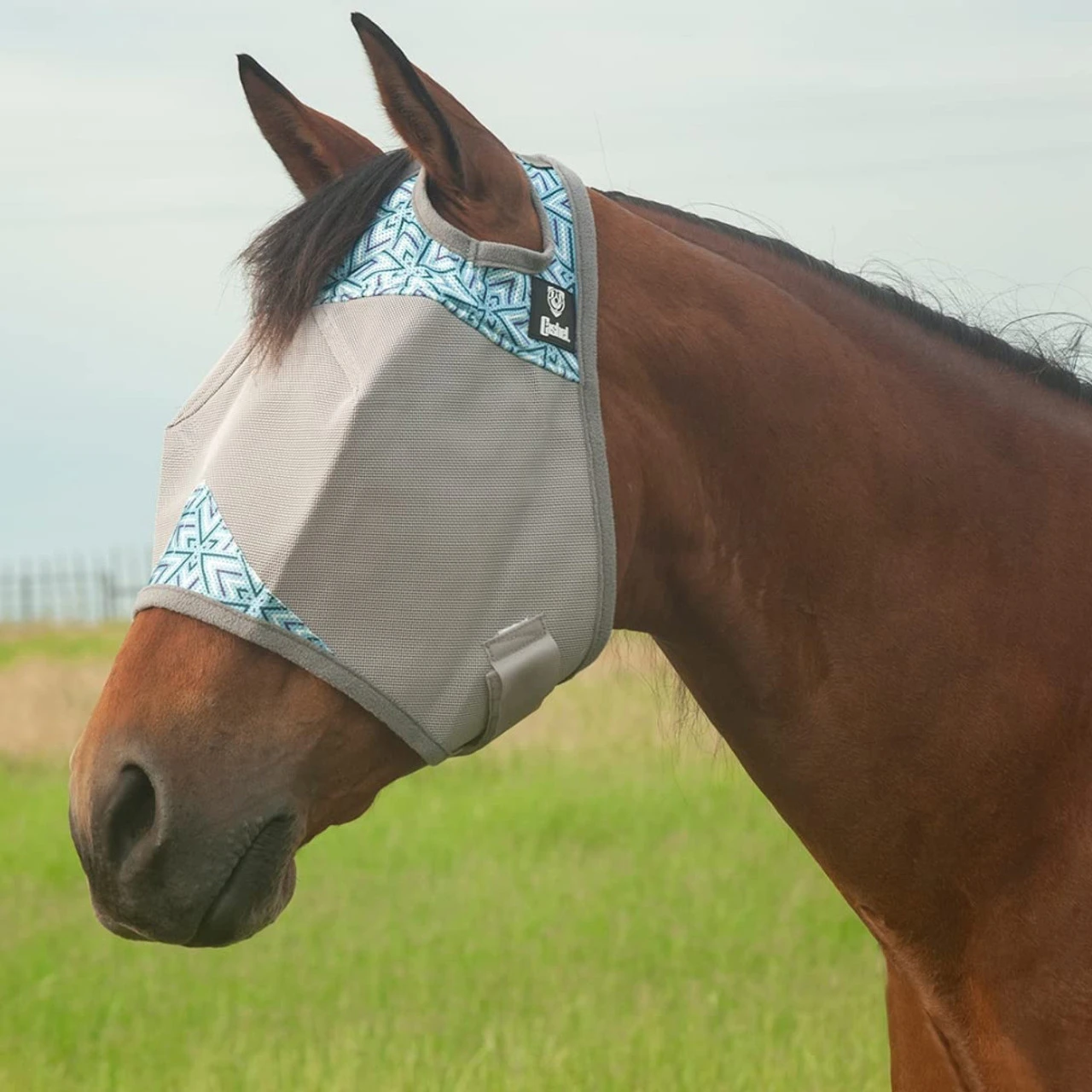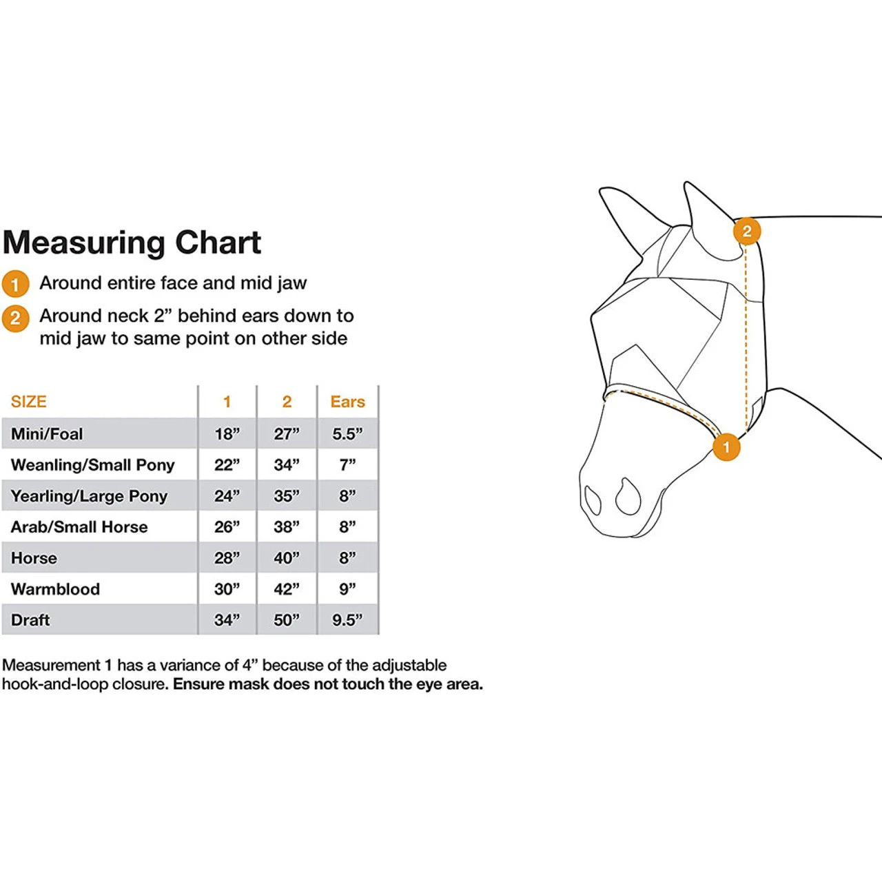 Offer your horse the ultimate in fly protection and a safe alternative to toxic and ineffective fly sprays. Top-rated for comfort, design, and fit by equine clinicians and publications, the Cashel Crusader Fly Mask employs a three-hole cap design that ensures comfort, eliminates forelock damage and remains stationary whether your horse is in the stall or the pasture. The panels are constructed of soft-coated nylon micromesh that hovers above the skin’s surface, protecting the soft tissues of the eyes and forehead from flying insects and blocking 70% of the sun’s damaging UV rays. Edges and seams are bound with low-nap plush fabric that won’t attach to irritating burrs or bristles.
