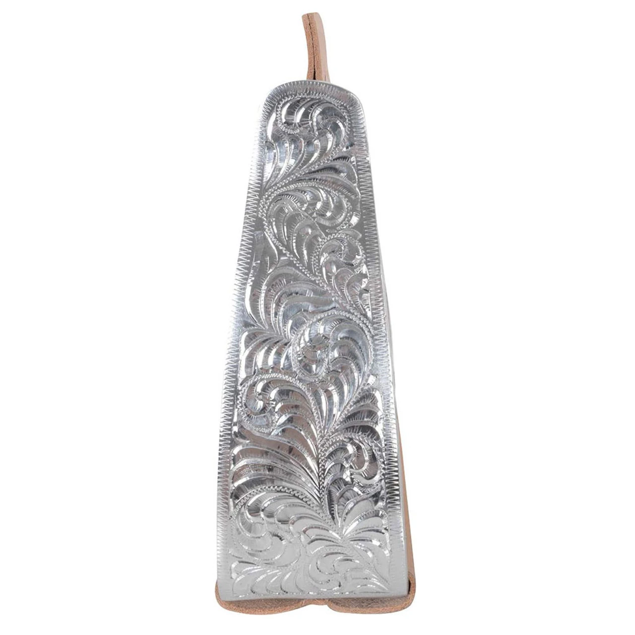 The offset design of the CASHEL Engraved 3in Slanted Stirrups is engineered to reduce stress on the rider’s knees and back by keeping constant contact with the foot to the tread for stability and balance. Made of heavy gauge aluminum construction with side engraving detail.
