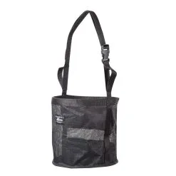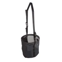 The CASHEL Feed Rite Bag eliminates feed waste due to sloppy eating, bullying, and head tossing. During feed time, it stops the fighting with multiple horses, lets all horses get their ration, helps hard to catch horses, and relaxes nervous horses. No grain is wasted with a spillproof design. Constructed of sturdy breathable coated mesh, adjustable strap, durable snap and elastic straps that retract as grain is eaten. White tag to mark the horse’s name for convenience.