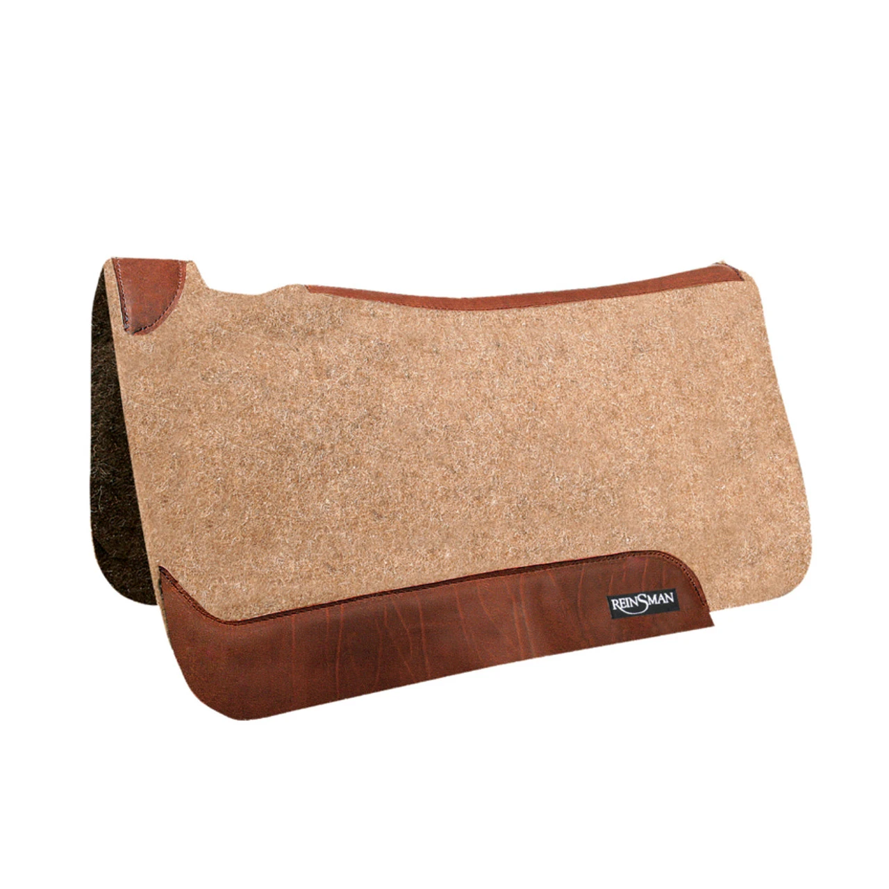 The REINSMAN Wool Felt Contour Saddle Pad is made with wool felt and is a top seller. Wool provides excellent shock protection. It will naturally wick away more moisture, release heat build-up, breathe for a cooler ride, and is quick drying after use. The wool conforms to the horse’s back resulting in less slippage. The contour shape provides a better fit for horses with more pronounced withers or more sway to their back and allows the saddle to fit properly. We use heavy oiled grain out leathers which result in less cracking and drying out.