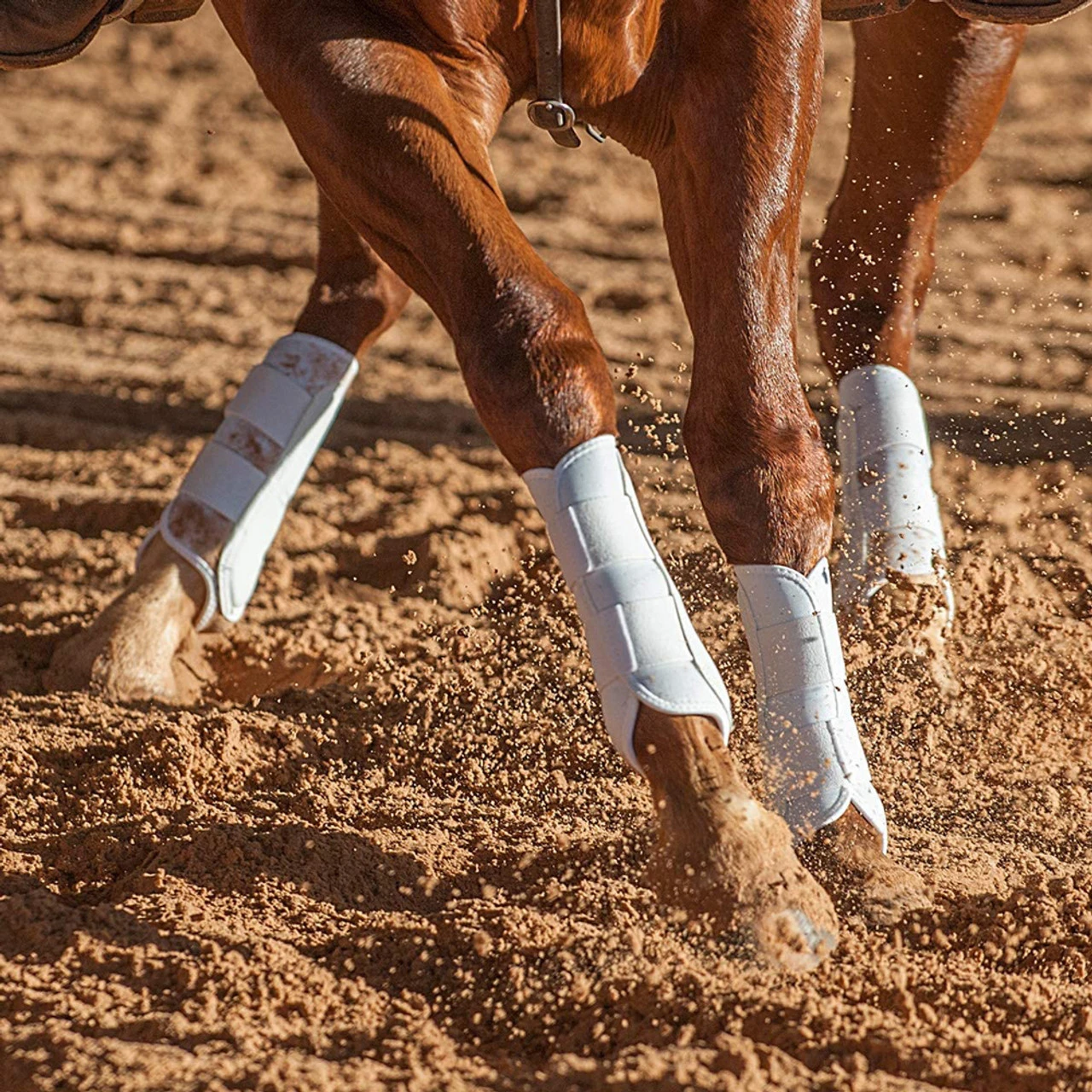 The AirWave’s clean, ergonomic fit is attractive without sacrificing protection. Breathable, close profile protective boot for practice or show pen. Provides tendon support and split and sesamoid protection. Elastic straps give full, even support. Quick and easy application.