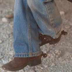 Classic Equine Kid Spur is designed specifically for smaller boots and has a gentle, rounded rowel. Small rowel is great for beginners, kids that are learning proper cues, and horses that like a light touch. Handsome oiled brown spur for children is a nice simple Western spur with plain band and rounded 7-point daisy rowel. Youth spur from Classic Equine will fit most children’s sized boots.