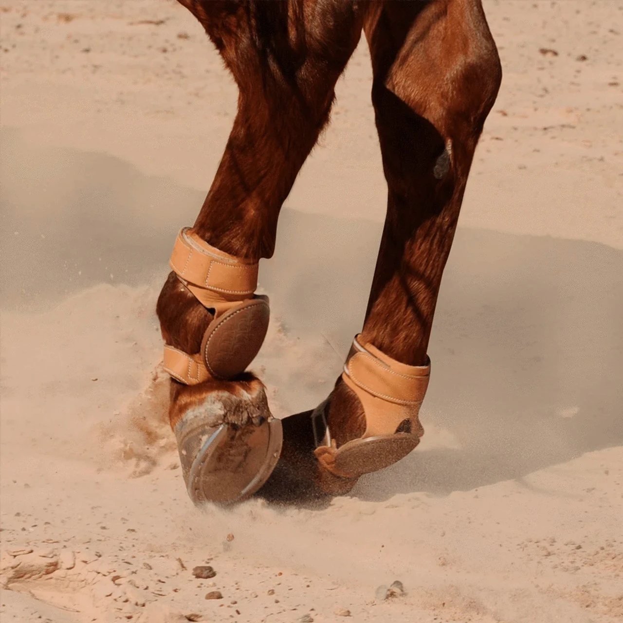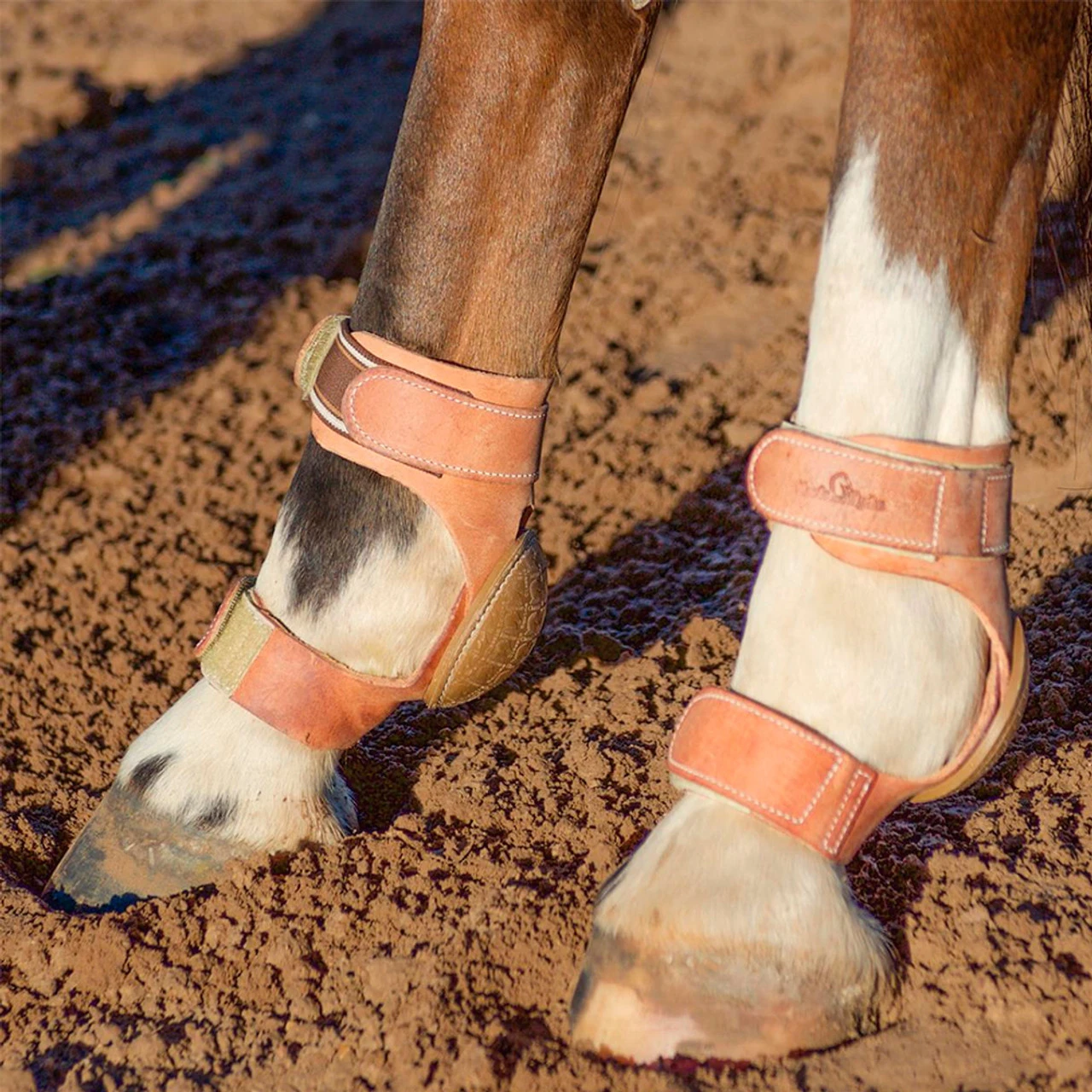 Classic Equine Skid Boots. Protects the performance horse from injuries caused by sliding stop maneuvers. Extensively tested for durability, comfort, and fit. Provides complete fetlock protection and no-rub fit. Outer shell is made form a full grain American cowhide specially treated to remain soft and pliable. Skid cups shaped and positioned to make contact with the ground in the center of the cup and proven to withstand the coarsest ground conditions.