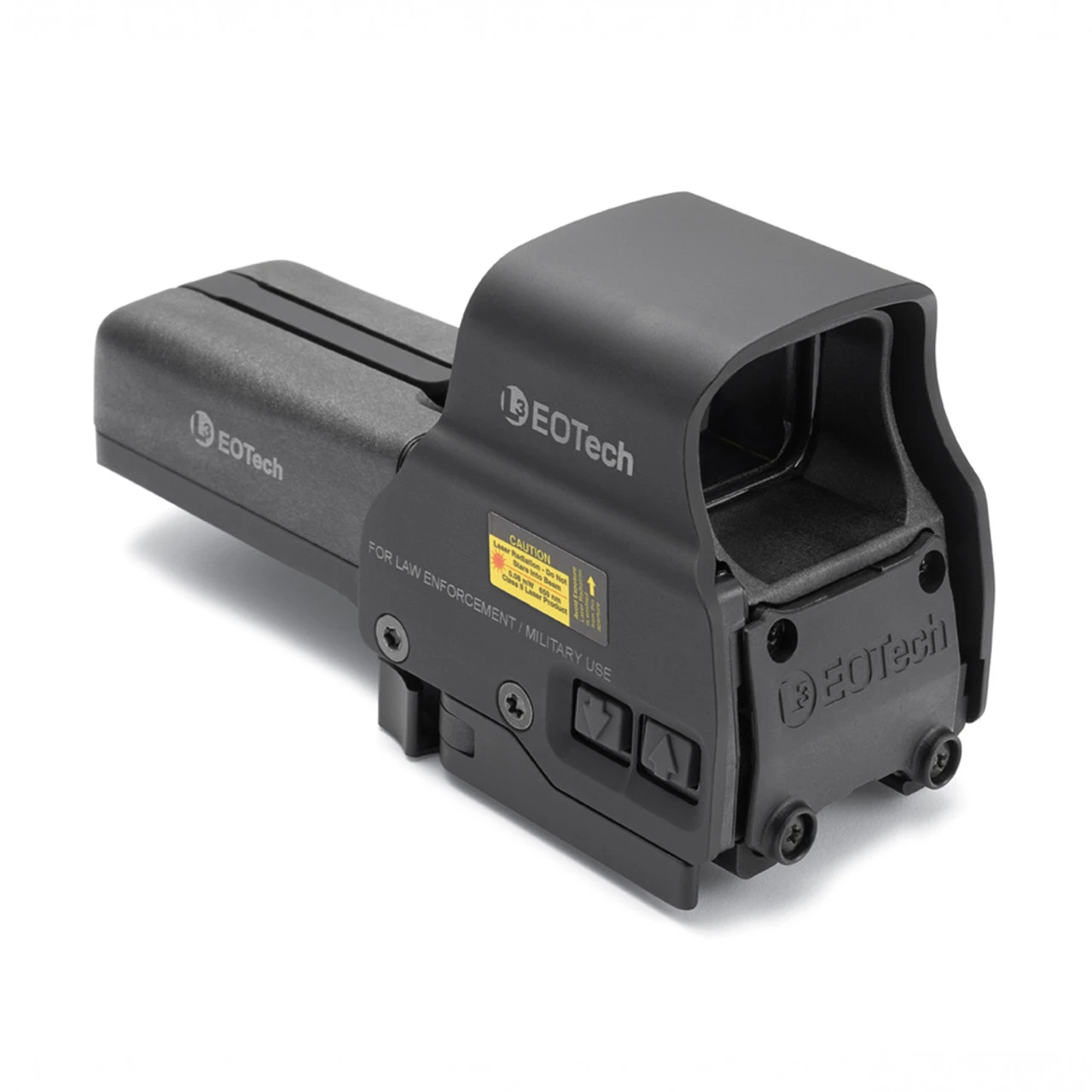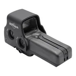 The EOTech 518 Holographic Weapon Sight runs on easy to find AA batteries but offers all of the features found in EOTech’s EXPS top of the line sight. With side button functionality you can reduce rail space when partnering the 518 with an EOTech magnifier. The 518 is also compatible with the drop-in Laser Battery Caps that EOTech designed to enhance aiming through the use of visible and IR lasers.