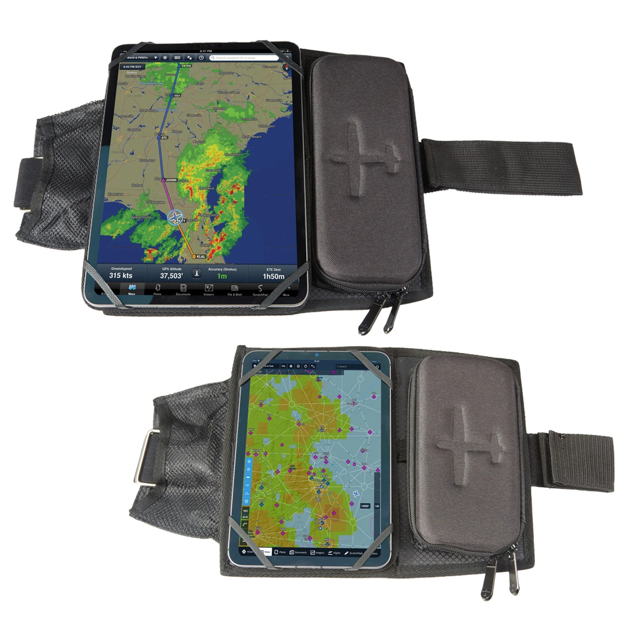 The most important piece of many pilots’ avionics packages is the one sitting on your lap. The iPad has changed the way we fly and having it firmly mounted in the right spot is essential to situational awareness in the cockpit. A new silicone attachment mechanism allows you to see more of the screen while taking up the minimal amount of space in your flight bag. The flexible holder is mounted to a firm surface that also provides rotational capabilities. Do you fly landscape for cross country and portrait for approaches? No problem. The Centerline Kneeboard easily rotates around the center-of-mass for the iPad.
