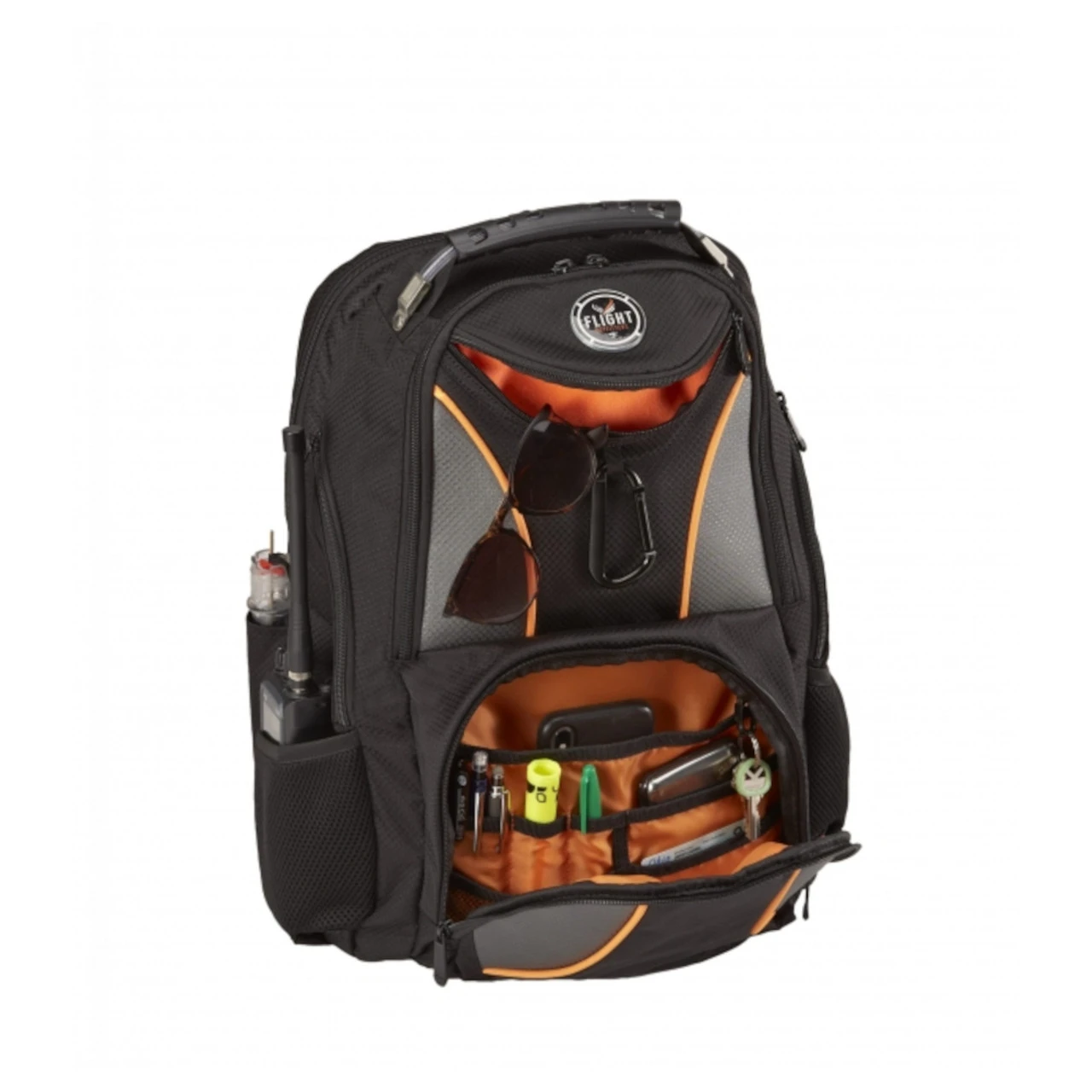 A good backpack keeps your most important gear organized, hauls everything you need for an adventure, and leaves your hands free to react to life as it comes at you. The Waypoint Backpack from Flight Outfitters does all that and more, whether you’re at the airport, the campsite, or the office – and you won’t look like you’re headed to math class. This thoughtfully-designed backpack has room for all your aviation gear but is flexible enough to work as an overnight bag or an everyday laptop case. The large center compartment accommodates a headset and kneeboard, with plenty of room left over for a change of clothes. Two interior mesh side pockets are perfectly sized for an ADS-B receiver or GoPro, and a large zippered pocket organizes your charging cords and battery packs. Signature orange interior makes it easy to find your gear, even at night. Dedicated pockets protect your electronics, including a padded compartment with sections for both a laptop and a tablet. It’s easy to access in flight when the bag is on the floor or under a seat. The outside is loaded with organization pockets too, including an organizer pocket, soft-lined sunglasses pocket, and even a carabiner for hanging larger gear.