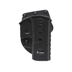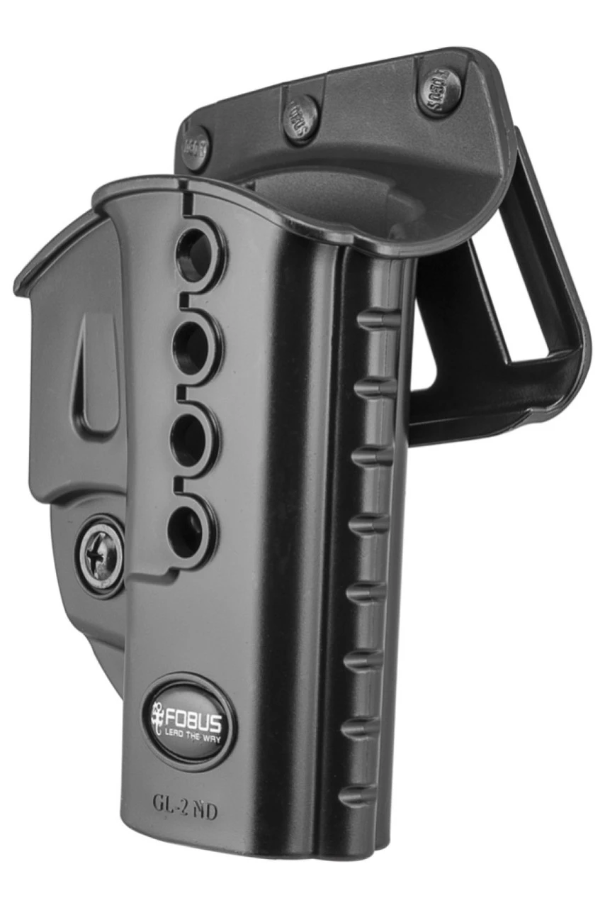 Fobus holsters are high riding, and low profile with unbelievable retention, comfort and lightweight construction. Custom laser design, injection molding and space-age high density plastics combine to create a holster which cannot be duplicated in leather or any other material. Also, it includes steel reinforced rivet attachment and a protective sight channel.