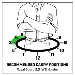 The Royal Guard 2.0 is supplied with removable black belt loops fitting belts up to 1 3/4″, with optional 1 1/4″ belt loops available for wear with narrower dress belts. All these features combine to make a truly professional-grade IWB holster.