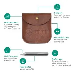 GRITR COLLAPSIBLE FIRE BELLOWING PIPE is a great fire-starting tool ideal for camping, hiking, hunting, fishing, picnics, and campfire activities. It is great for outdoor and indoor use, fire-pits, stoves, grills, fireplaces, etc. It can also be used as a reusable straw.
