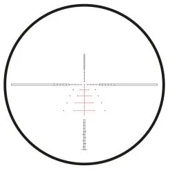 The exclusive SR Pro II second focal plane (SFP) 1 mil reticle has accurate spacing at the 8x magnification setting, and features an illuminated central aim point and hollow posts at the outer edges of the reticle that don’t block the view, in addition to range finding brackets. Crosses and red posts in the lower portion are marked with progressively wider gaps that mimic the greater drop of point of impact with increasing distance. Each black post is marked with 1 MRAD segments.