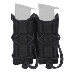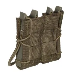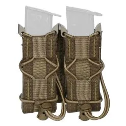 The High Speed Gear Double Pistol TACO MOLLE Mag Pouch is suitable for almost any pistol magazine. It fits up to two magazines or a combination of a magazin and a flashlight. This versatile pouch is also suitable for a variety of multi-tools, knives and flashlights. It maintains a positive, adjustable grip on its contents without additional securing systems needed.