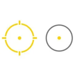 The HOLOSUN HE512C-GD Circle Dot Reflex Sight is built with an aluminum housing, wide field of view, a tool-less battery compartment and the new revolutionary Gold Reticle. This reflex gold dot optic is equipped with their Multi-Reticle System (MRS) that includes three reticle choices. A 65 MOA circle dot reticle with the option of switching to a 2 MOA dot only and for quick target acquisition, a 65 MOA circle only.
