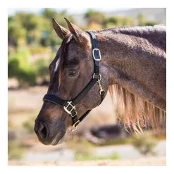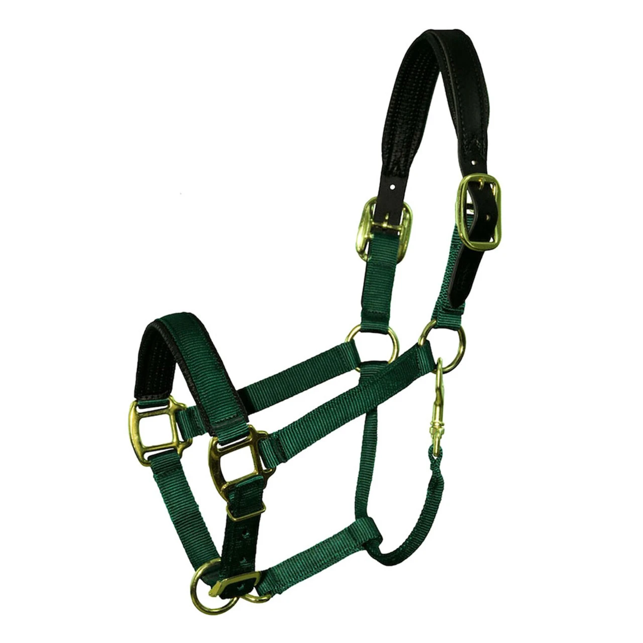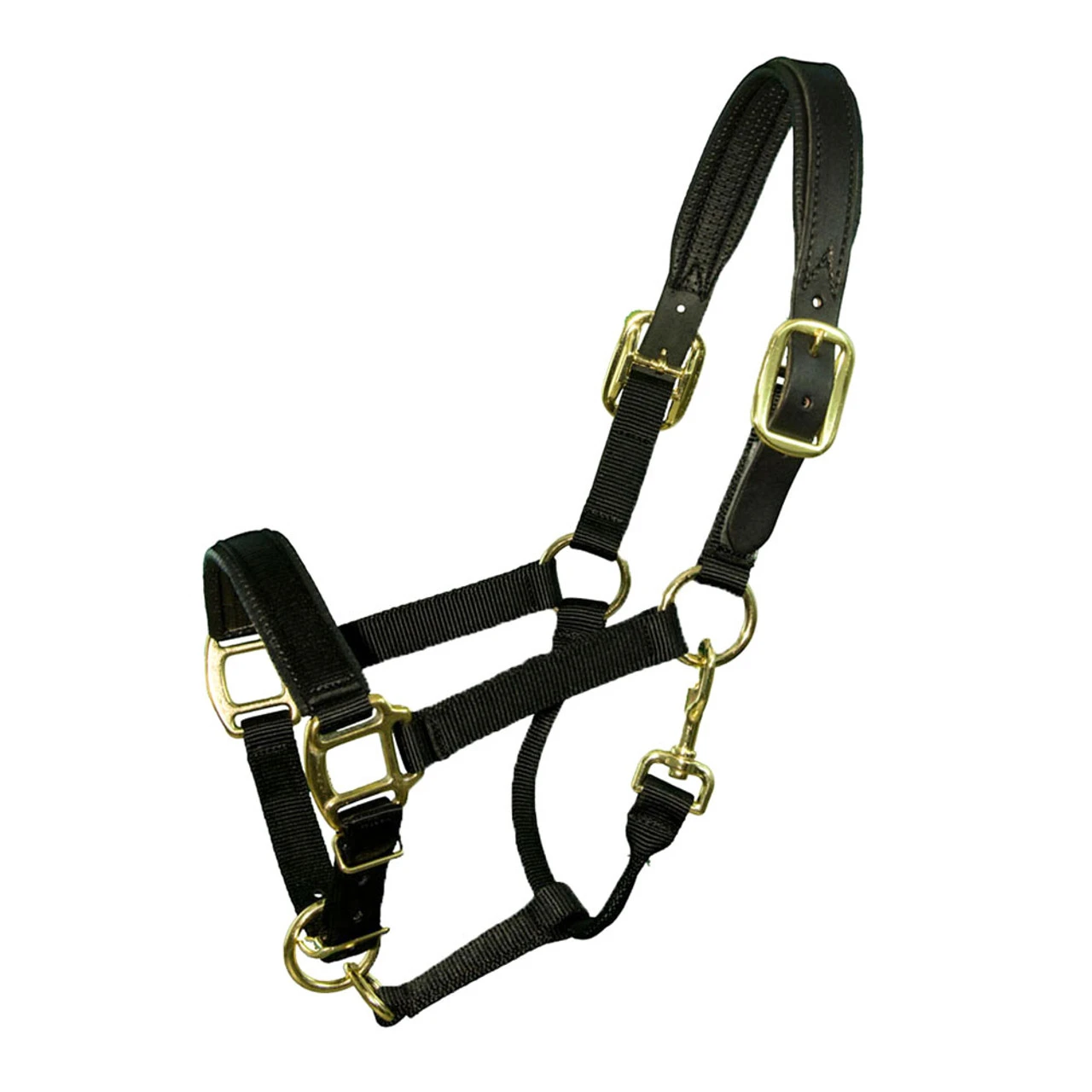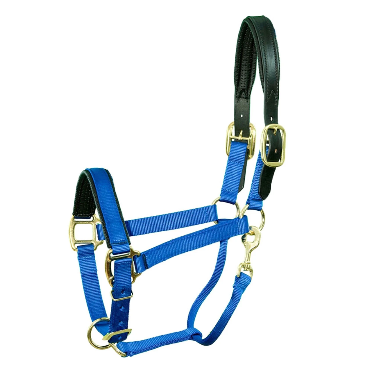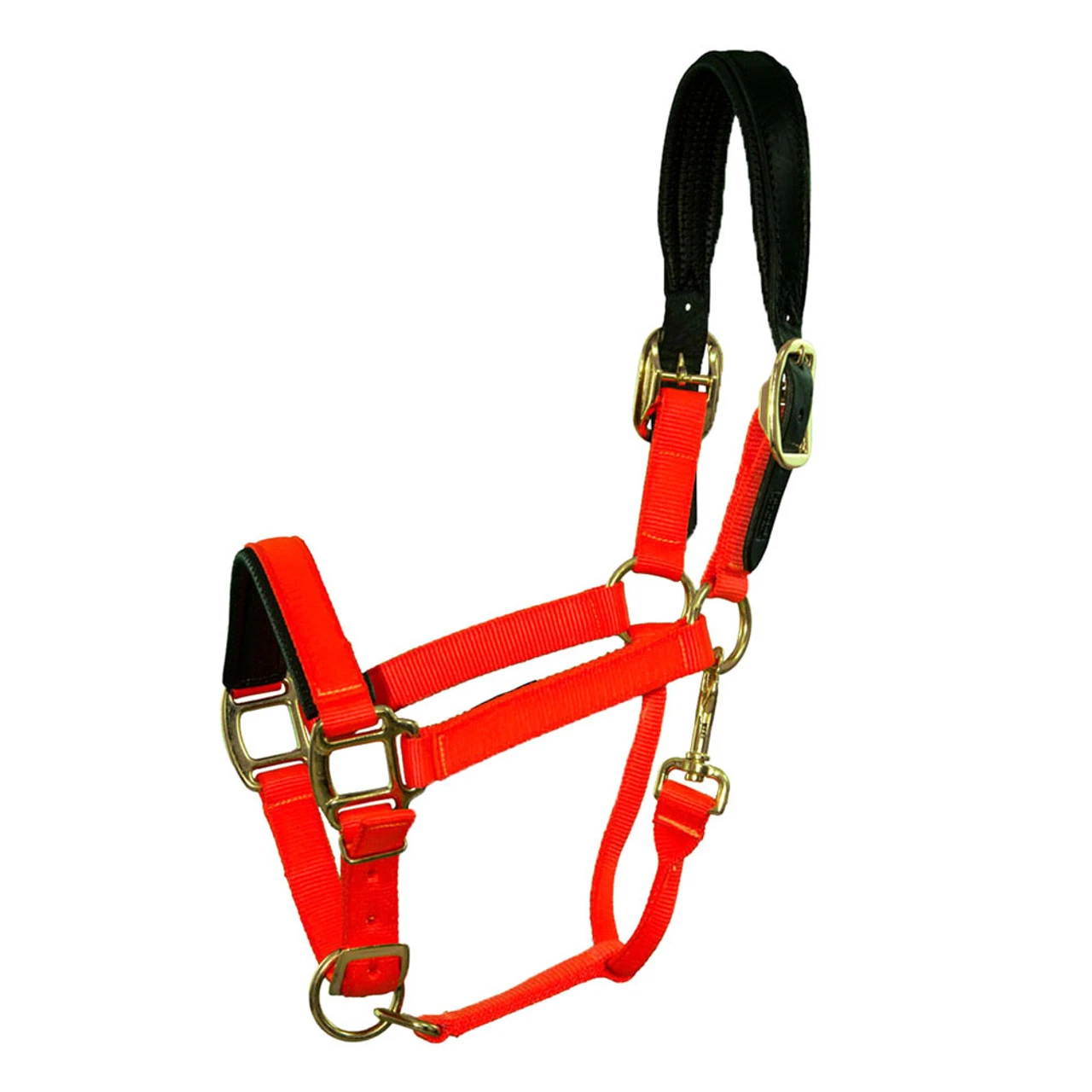 The Chafeless Breakaway Halter is a nylon halter with comfort padding sewn into the nose and leather crown. Halter features brass plated hardware adjustable chin and throat snap.