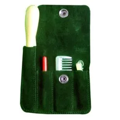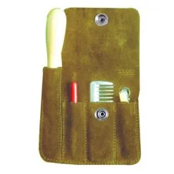 The INTREPID INTERNATIONAL Horse Mane Braiding Kit easily attaches to your belt. The kit includes a rug hook, aluminum pulling comb, hair clip and a thread cutter that will cut old braiding bands.