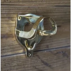 The INTREPID INTERNATIONAL Solid Brass Bridle Hook is designed to hold riding harnesses, bridles, halters, leads and reins. It helps you store everything safely off the ground to prevent dirty, worn out gear. The 3 screw holes provide an easy yet sturdy mounting solution. This solid brass piece is made to withstand years of use in any condition.