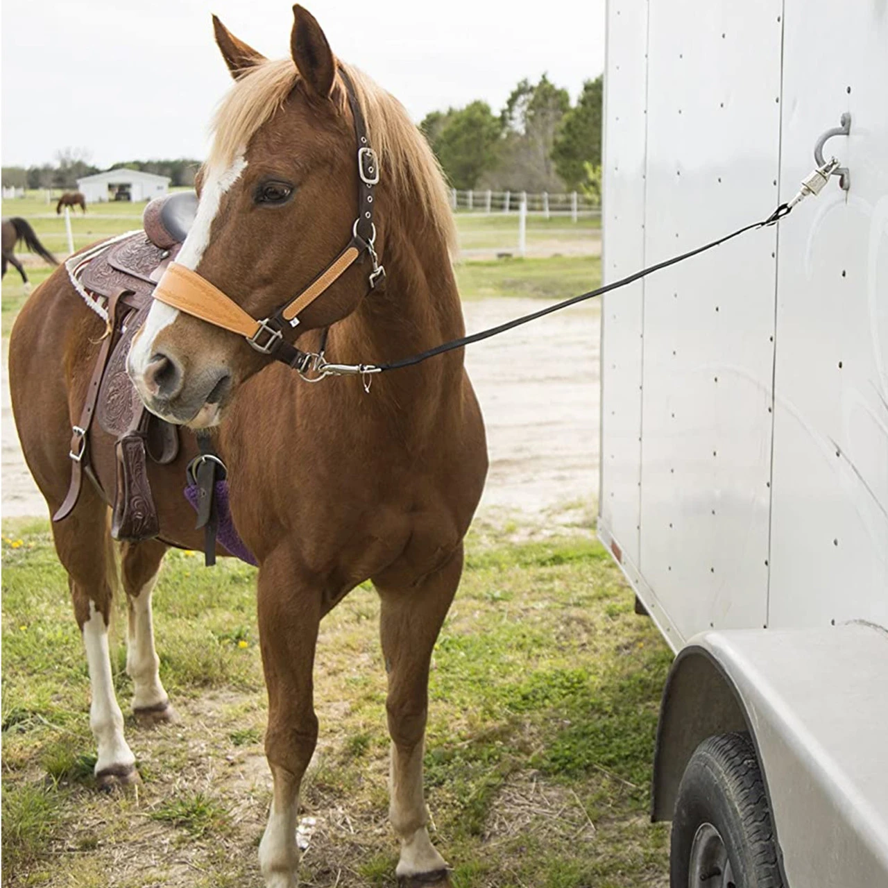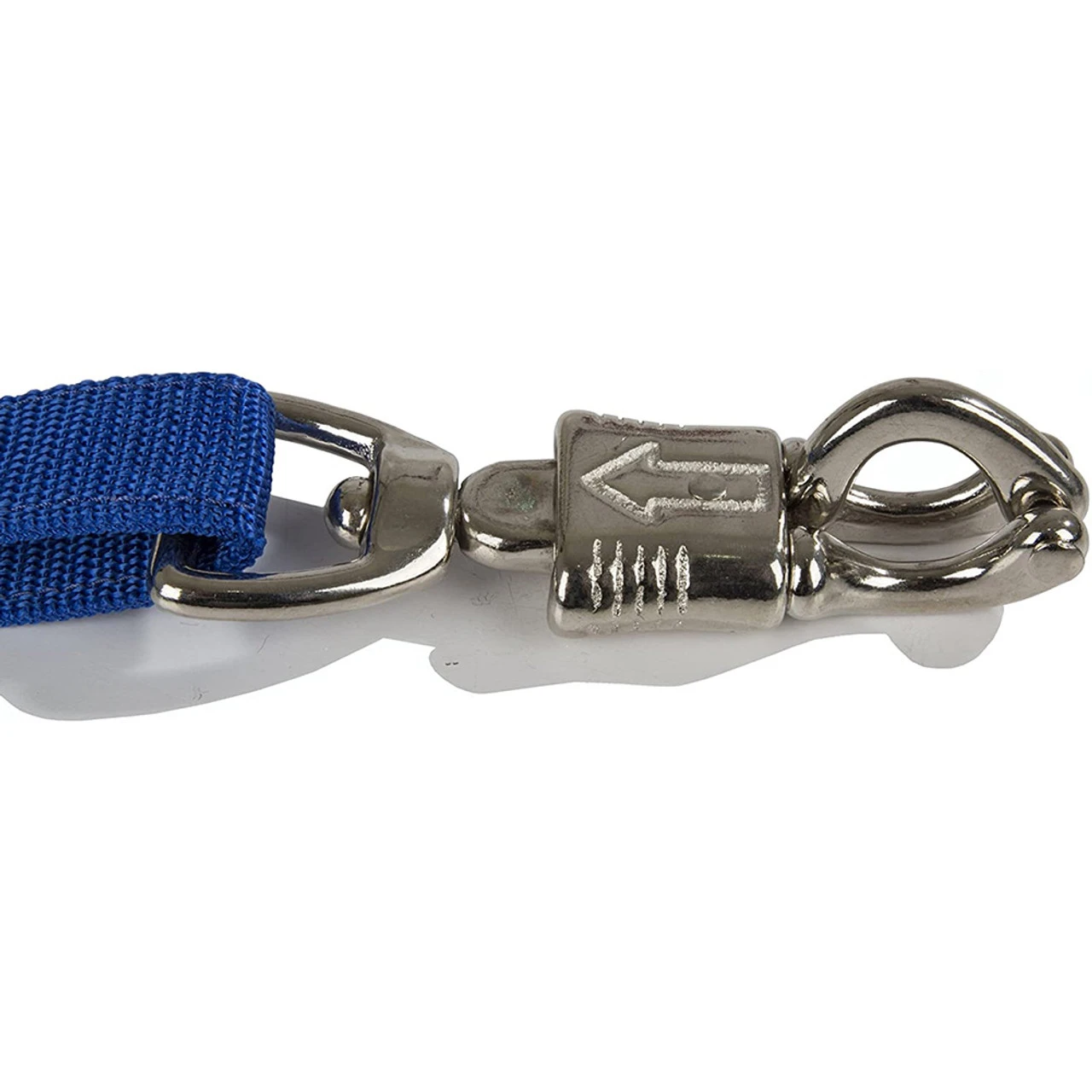 Standard adjustable 1 inch nylon web tie strap Adjusts from 20 to 30 inches. Panic snap at one end, Bull snap at the other.