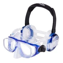 - Special tube and seal system automatically equalizes ear pressure as diver exhales into mask