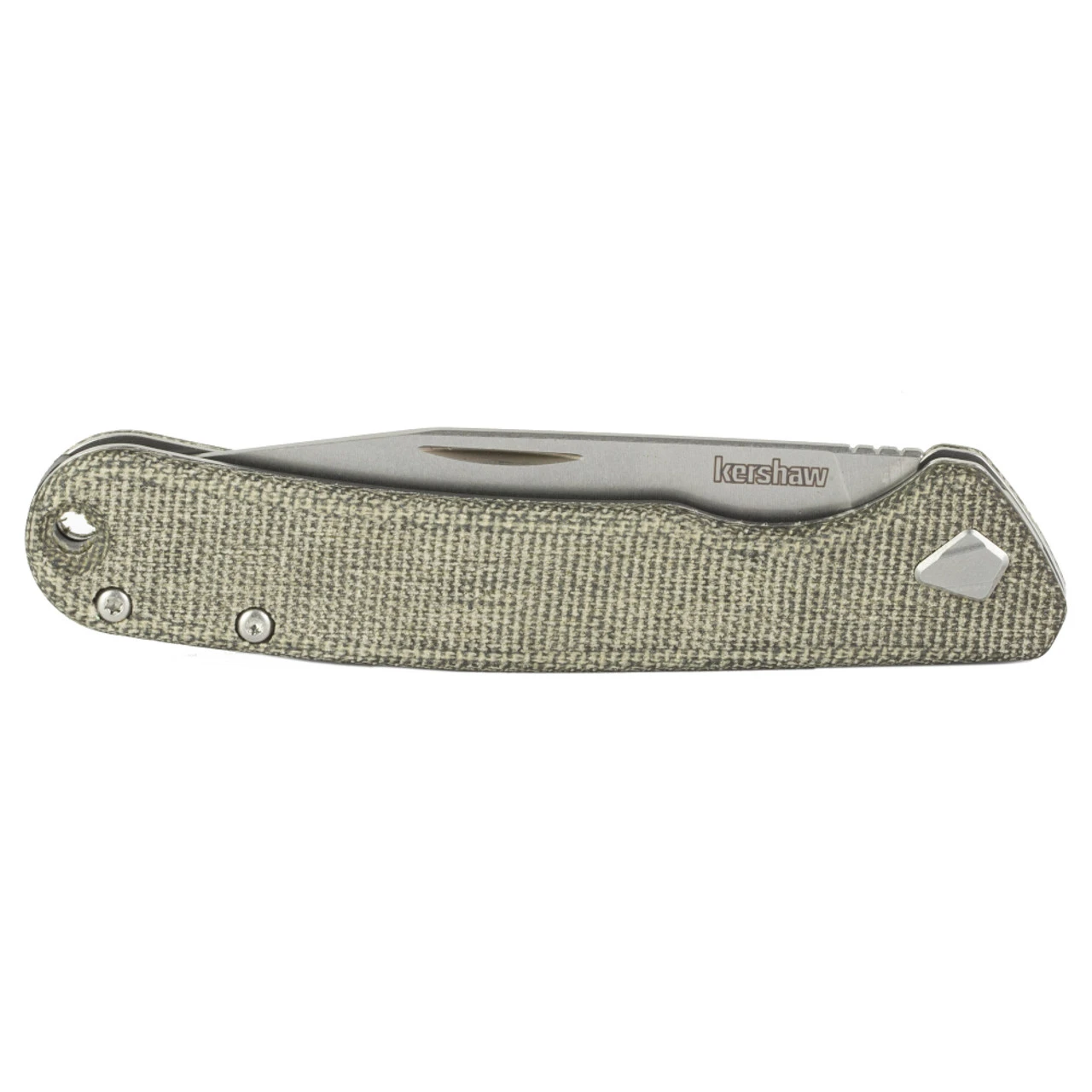 Kershaw pays tribute to the American spirit with the USA-made Federalist non-locking slipjoint. The double-detent system holds the blade in place while closed, and the half-stop offers controlled opening and closing action. Its green, canvas micarta handle feels satisfying in the hand and is extremely durable during the lifetime of the knife. This eye-catching aesthetic makes it feel right at home in the outdoors or as an everyday carry. CPM-154 blade steel holds an impressive edge, and the full flat grind, ultra-slicey blade glides through work tasks with ease. Finishing touches such as a lanyard hole, glass-filled nylon backspacer, and a custom pivot that forms a shield detail complete the distinctly American Kershaw Federalist.
