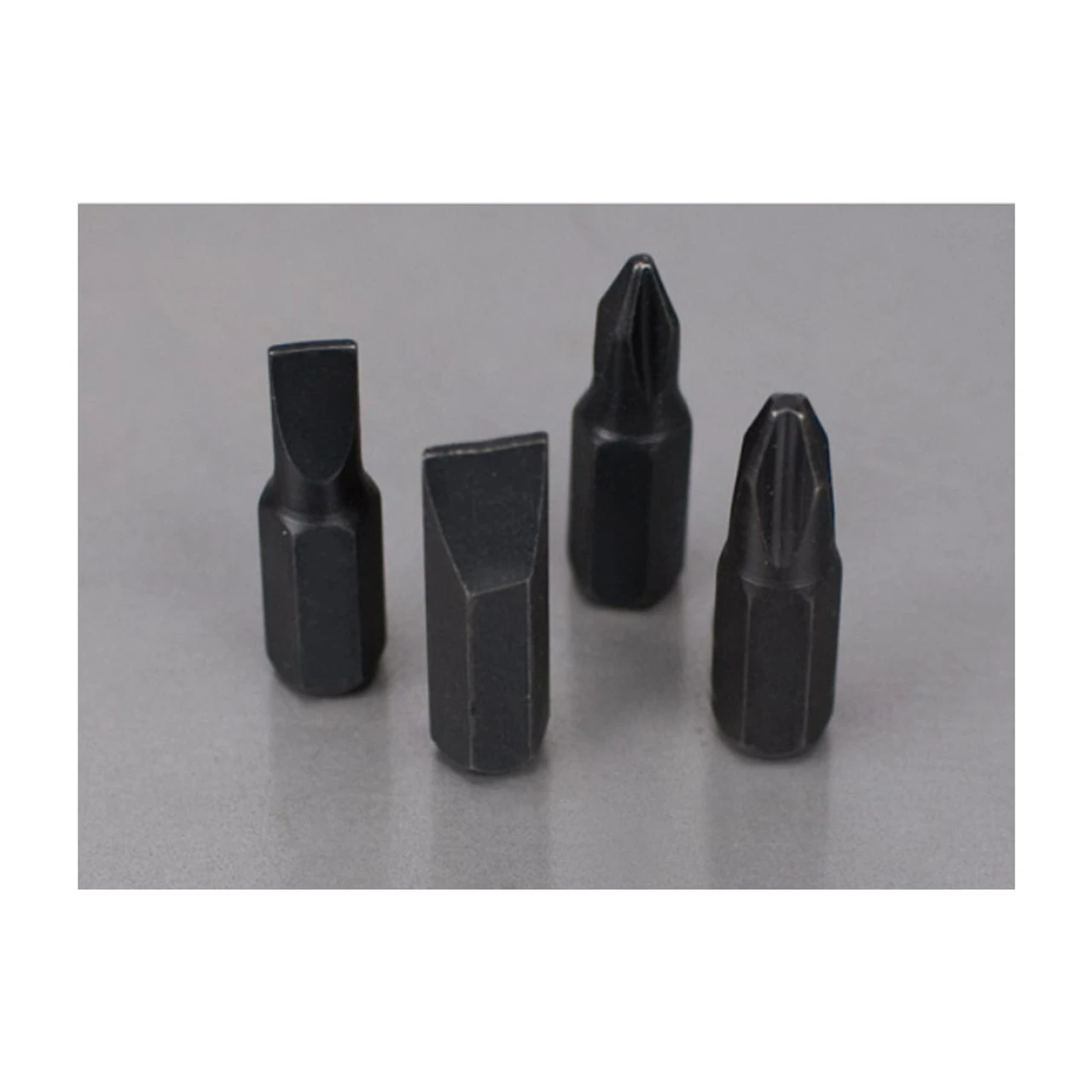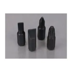 - 1/4-in. hex drive, 2 flathead, 2 crosshead bits