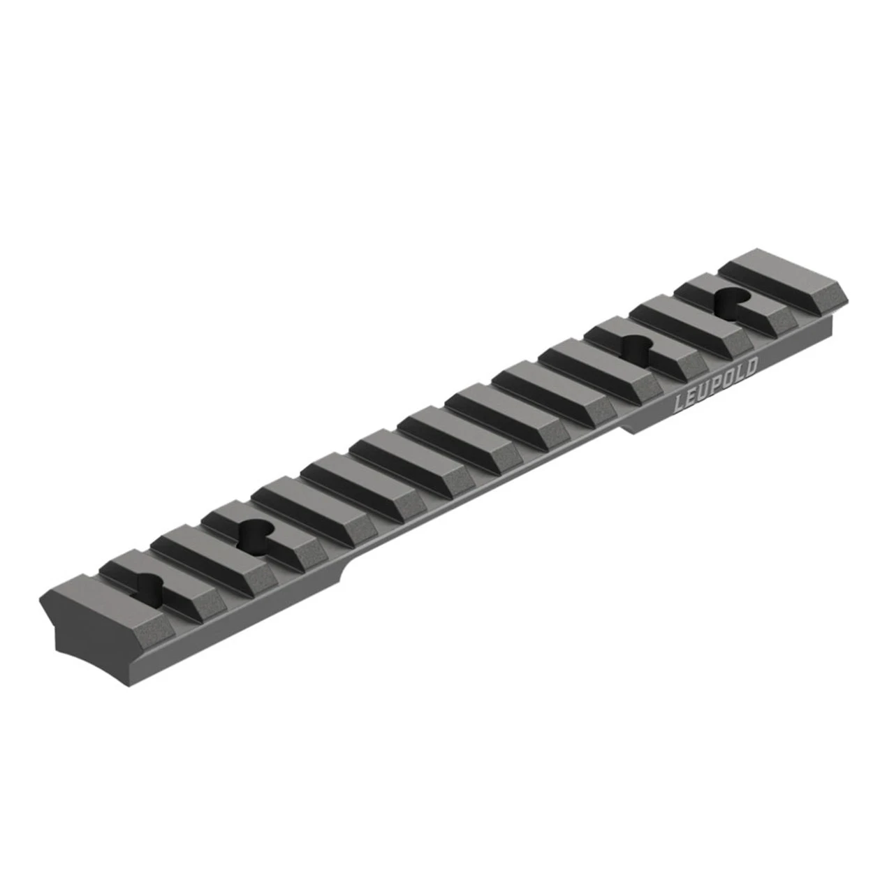 The LEUPOLD BackCountry Cross-Slot Picatinny Rail mounts to model-specific bolt-action rifle receivers to provide a solid mounting surface for heavy, tactical sights. The 1-piece rail is constructed from machined, lightweight 7075-T6 aluminum, and comes with a matte black finish. The Leupold BackCountry rifle scope base has a universal cross-slot design, which is compatible with Leupold Mark 4 aluminum rings, or standard Picatinny or Weaver-type rings. Includes mounting hardware. Made in USA.