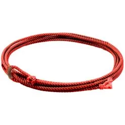 Easy to throw kid rope that is 5/16″ x 20′ medium lay nylon, waxed rope with rawhide burner.