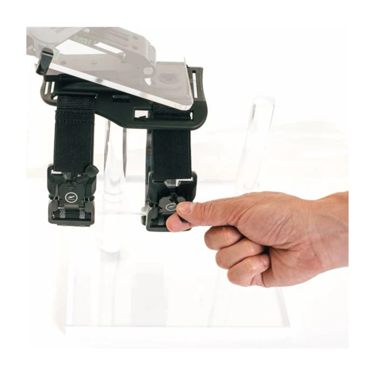 The iPad Leg Mount – The Ultimate Kneeboard. Now you can tilt and position the iPad or iPad Mini where it is easily seen and operated. Like adding an additional screen to your cockpit. Maintain full visibility of panel information and controls. Rock solid, very comfortable, magnetic latch straps. For airplanes and helicopters or any application where the iPad is to be secured to your leg. Easily rotates between portrait and landscape modes. iPad/Tablet Device Holder (Sold Separately). Images shown of the holders are illustrative. The Mygoflight iPad/Tablet Leg Mount requires the iPad or Tablet to be in a Mygoflight iPad Sport Case, iPad Cool Case or iPad or tablet Universal Cradle (to use an existing iPad case or mount a tablet). These are called Device Holders and mate to all Mygoflight mounts.