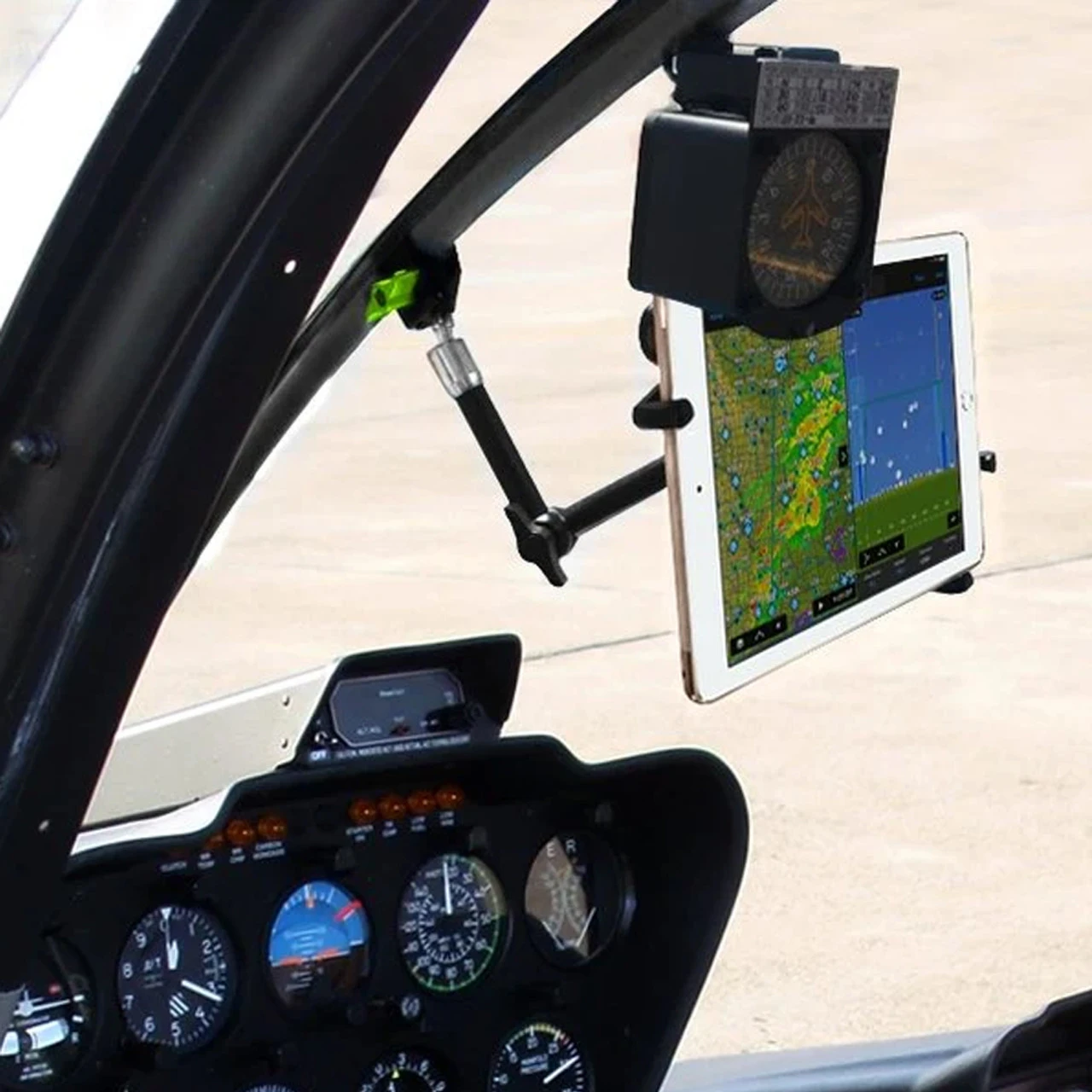 This Robinson Helicopter Center Spar Mount works on many spars, struts, and tubes common in Mooney, Husky and other aircraft. Also works well as a Robinson Helicopter Mount, securing to the center spar on the windshield of Robinson R22, R44, and R66 helicopters. The infinitely articulating and adjustable arm attaches to the Universal Cradle or the iPad Sport Case. Once attached, your device can be viewed in either portrait or landscape mode simply by rotating the device, without having to make any additional adjustments.