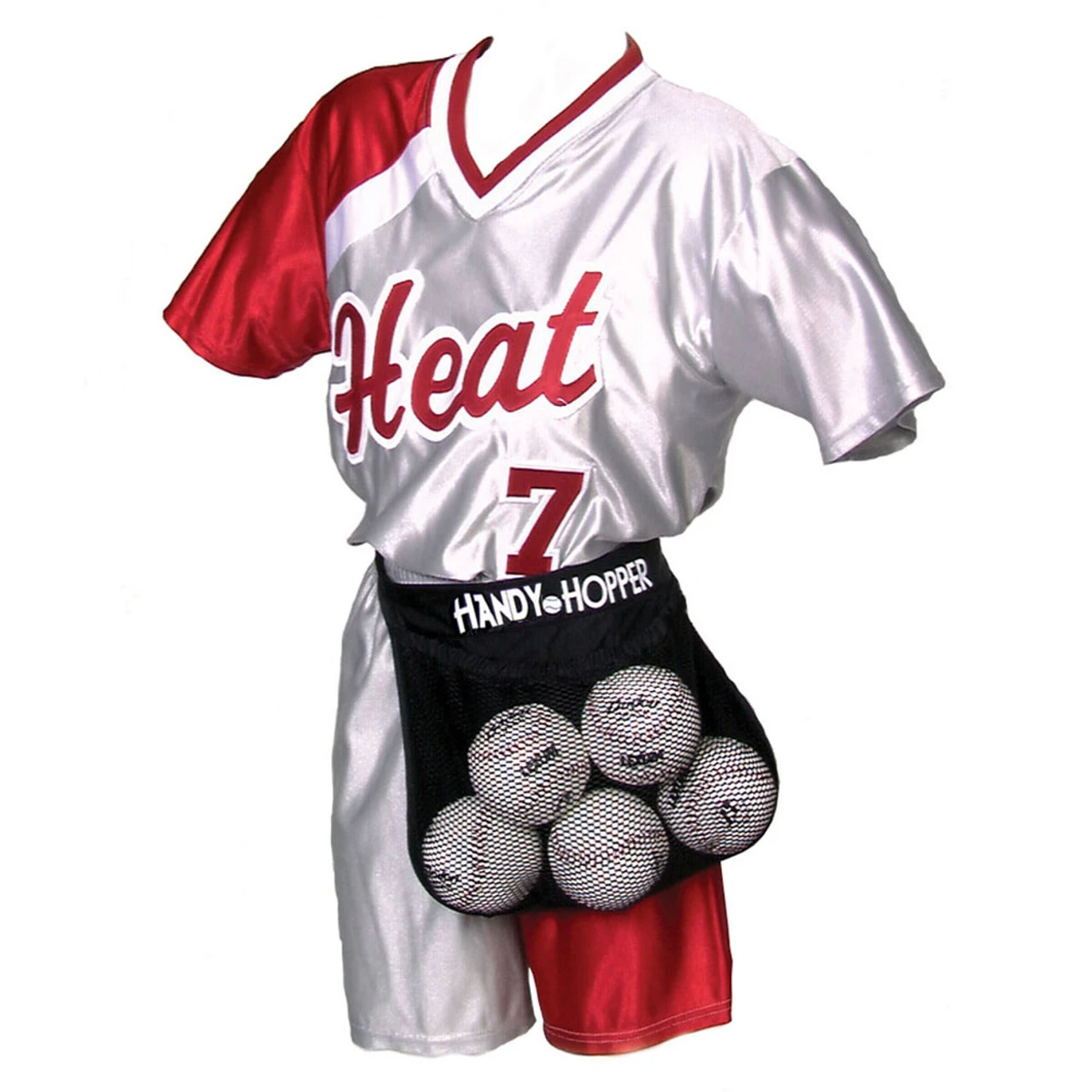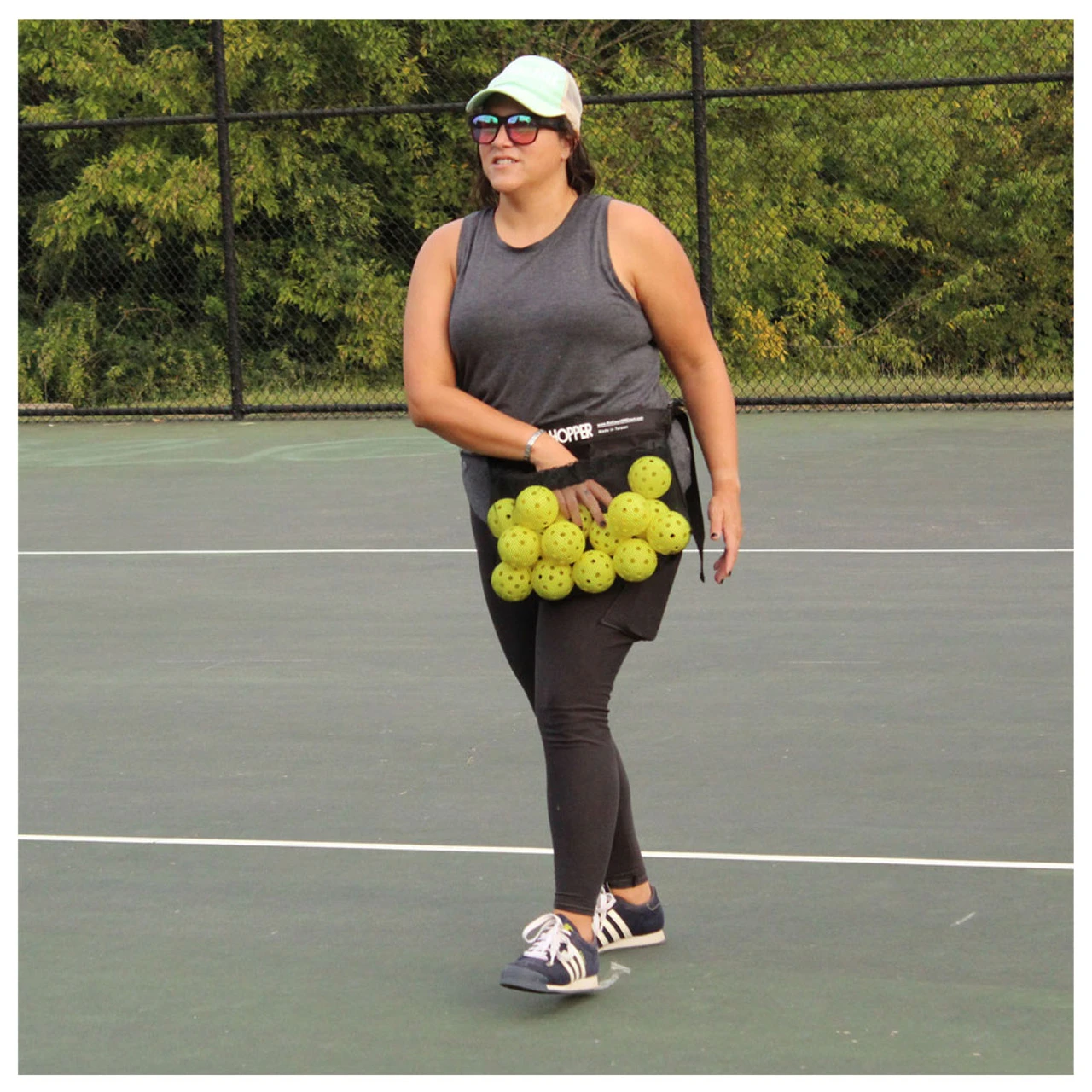 Improved Handy Hoppers now hold up to 36 balls! Great for travelling coaches. No more cardboard boxes at tournaments! Also convenient for high school and college coaches to rove courts and keep balls handy! Comfortable to wear around the waist. Expandable pouch holds up to 36 tennis balls, 34 Pickleball balls or baseballs, and 21 softballs.