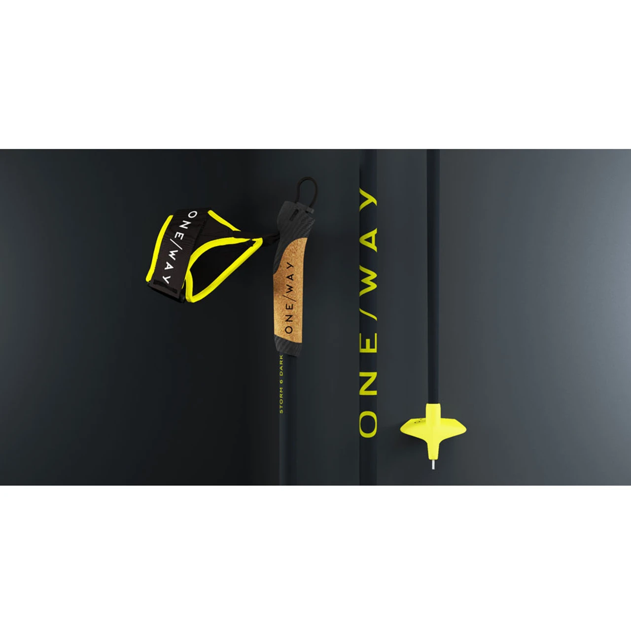 The ONE WAY Storm 6 Dark Pole is a 30% Carbon pole with AV Race Strap, Carbon Grip, and Flash Basket for energetic skiers. It offers the necessary support and comfort in all types of snow conditions to enjoy your next tour on the tracks.