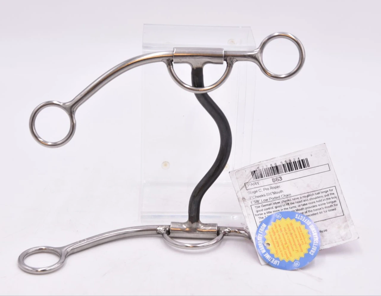 Stage C bits are built for riders and horses who love neck reining. Horses who respond well to poll pressure are in Stage C. Features include solid mouthpieces and cheek attachments, and swivel cheeks with jointed mouthpieces or low to medium ports.
