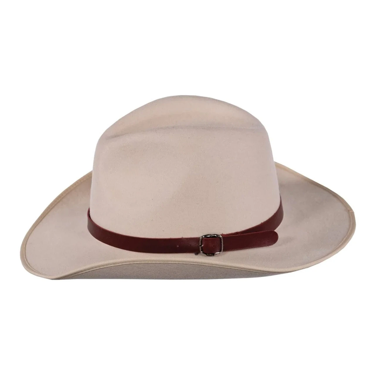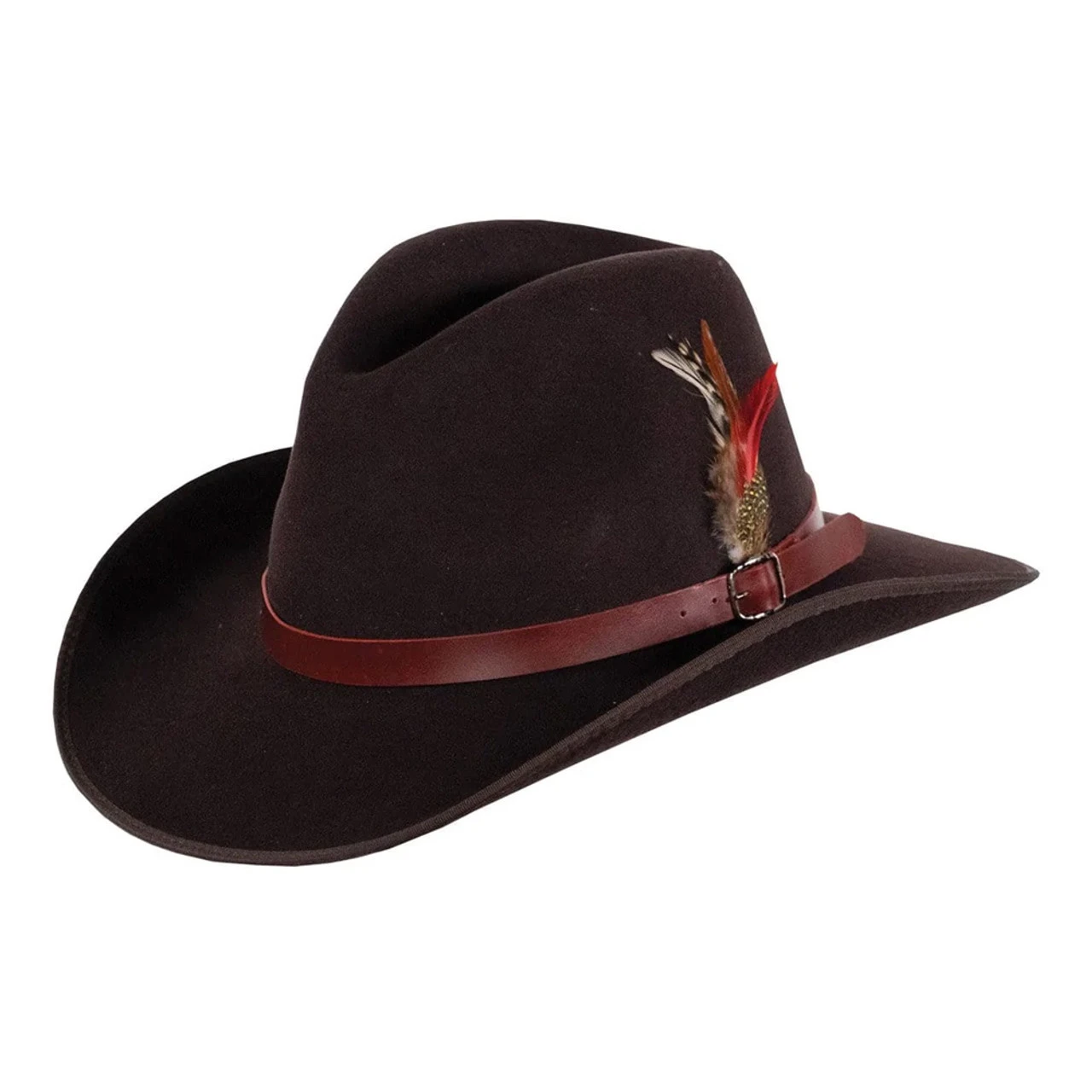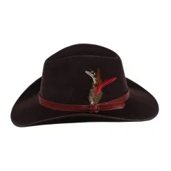 Looking sharp and looking speedy is easy in Outback Trading’s Gallop Hat! This beautiful Wool hat has a 5-inch crown and a 3 and a quarter inch brim and features a leather hat band along with a satin lining.