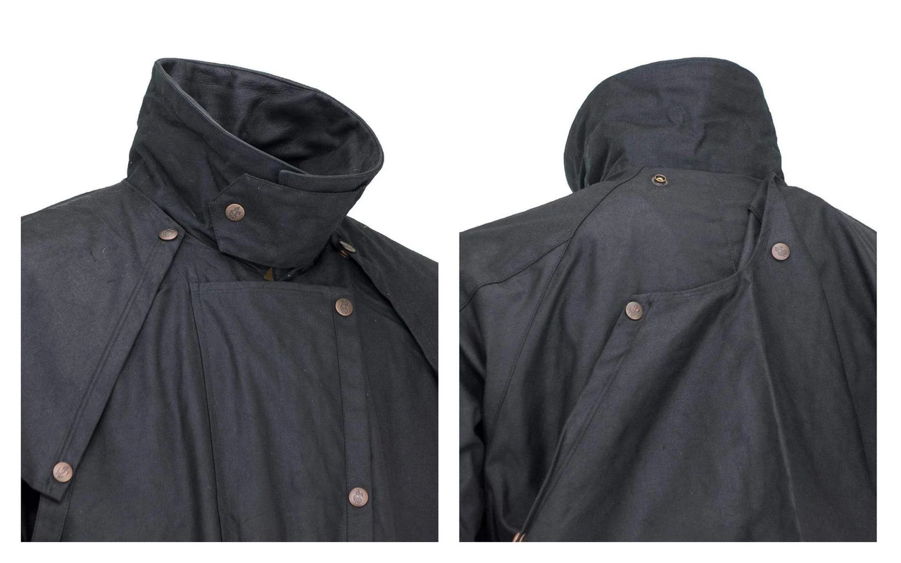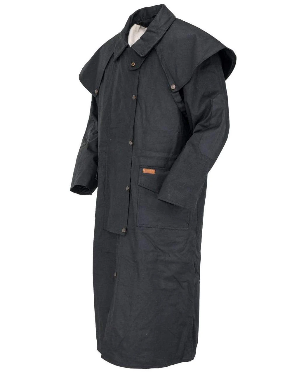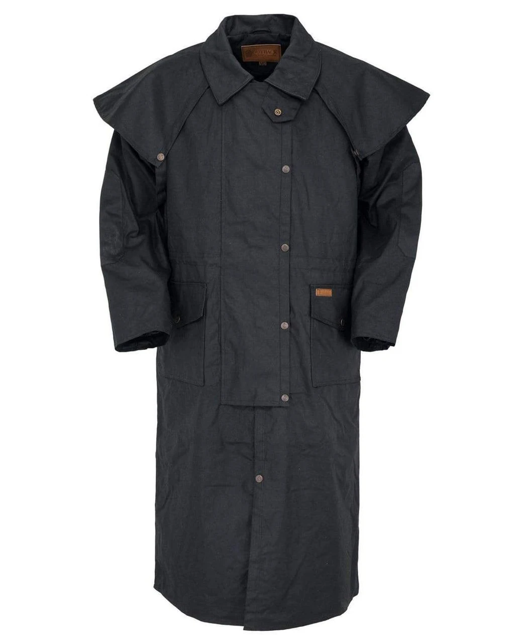 OUTBACK TRADING Stockman Duster is an extra long Duster that helps keep you dry and warm in all weather, due to the many features and premium materials in this unique oilskin slicker.