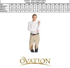 These riding Ovation Women’s Celebrity Slim Secret EuroWeave Euro Seat Front Zip Knee Patch Breeches are constructed of soft, durable material, and are classically styled in a regular rise with a front zip Euroseat and a relaxed fit through seat and thigh for a comfortable ride.