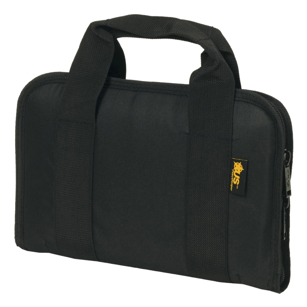 US PeaceKeeper Attache Case organizes and protects your handgun and up to five spare magazines. It’s slim design allows for easy storage in most safes while keeping your firearm protected and instantly ready for transport to the range. Wrap around handles make this case a secure carry. Case is constructed of Black 600 Water Resistant Denier with heavy duty self-repairing zippers.