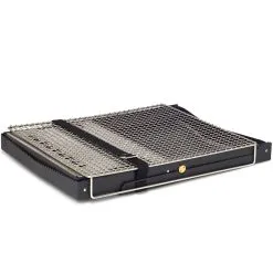 The Kamoto is available in two sizes and includes a stainless steel grill grate. The Large accommodates US standard 16″ logs.