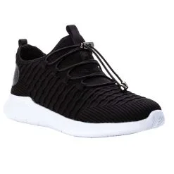 The PROPET TravelBound Sneaker is made with a one piece stretch knit mesh with knit-in texture detailing and external leather heel for counter support. Arch supporting high density Open Cell PU foam allows air to flow for a cooler, healthier footbed. Thermally controlled rubber provides long lasting responsive cushion that keeps feet energized.